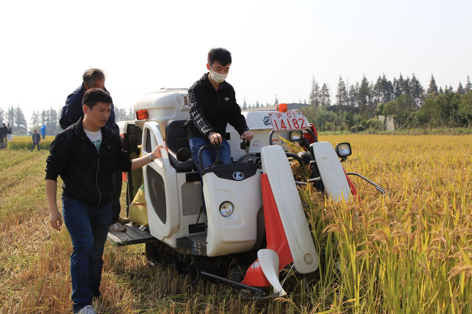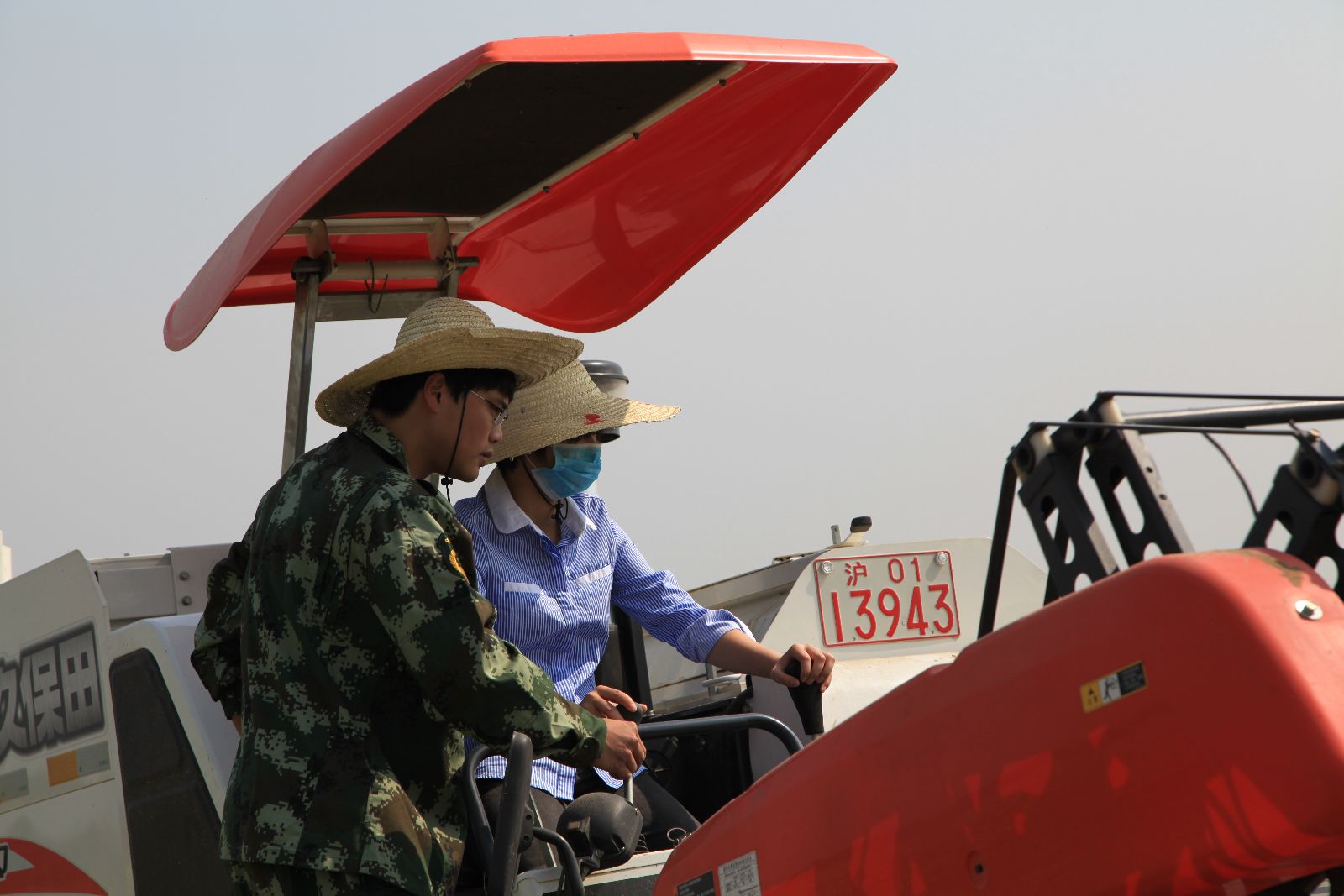 金秋十月,学院在奉贤区的海湾实训基地,380亩水稻已经成熟,饱满的稻穗压弯了秸秆在微风中摇曳。每到丰收时节,园艺园林系设施农业技术专业的大二学生便会来到这里学习收割机的驾驶技术。农机操作是该专业的必修课程,为了让这群95后大学生们切身感受农机在现代农业中的重要性,通过收割水稻掌握农机操作技术,学院直接把课堂搬到了金色的田野。10月13日,来自设施141班的26位95后男孩女孩来到田头,首次学习驾驶大型农机具。在带教老师指导下,依次上机操作,边学驾驶边收割稻谷,亲自体验了一回农民伯伯忙着丰收的苦与乐。
