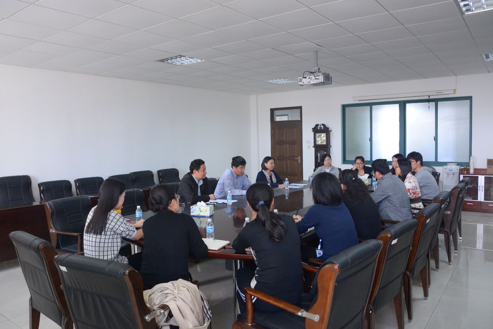 吴乃山提出学校将继续坚持辅导员队伍建设“专业化、职业化和专家化”的发展路线,逐步推进辅导员特色工作。魏华从组织领导、选聘配备、培养发展、考核激励、特色工作等方面对学院辅导员队伍建设工作进行了详细汇报。他指出辅导员队伍建设水平直接关系到学院学生培养质量,加强辅导员队伍建设是加强和改进大学生思想政治教育,培养高素质人才的组织保证和重要机制。我院将一如既往的重视辅导员队伍建设,努力打造一支精良的思想政治教育教师队伍。通过交流提问,检查组更清晰地了解了我院辅导员建设情况。