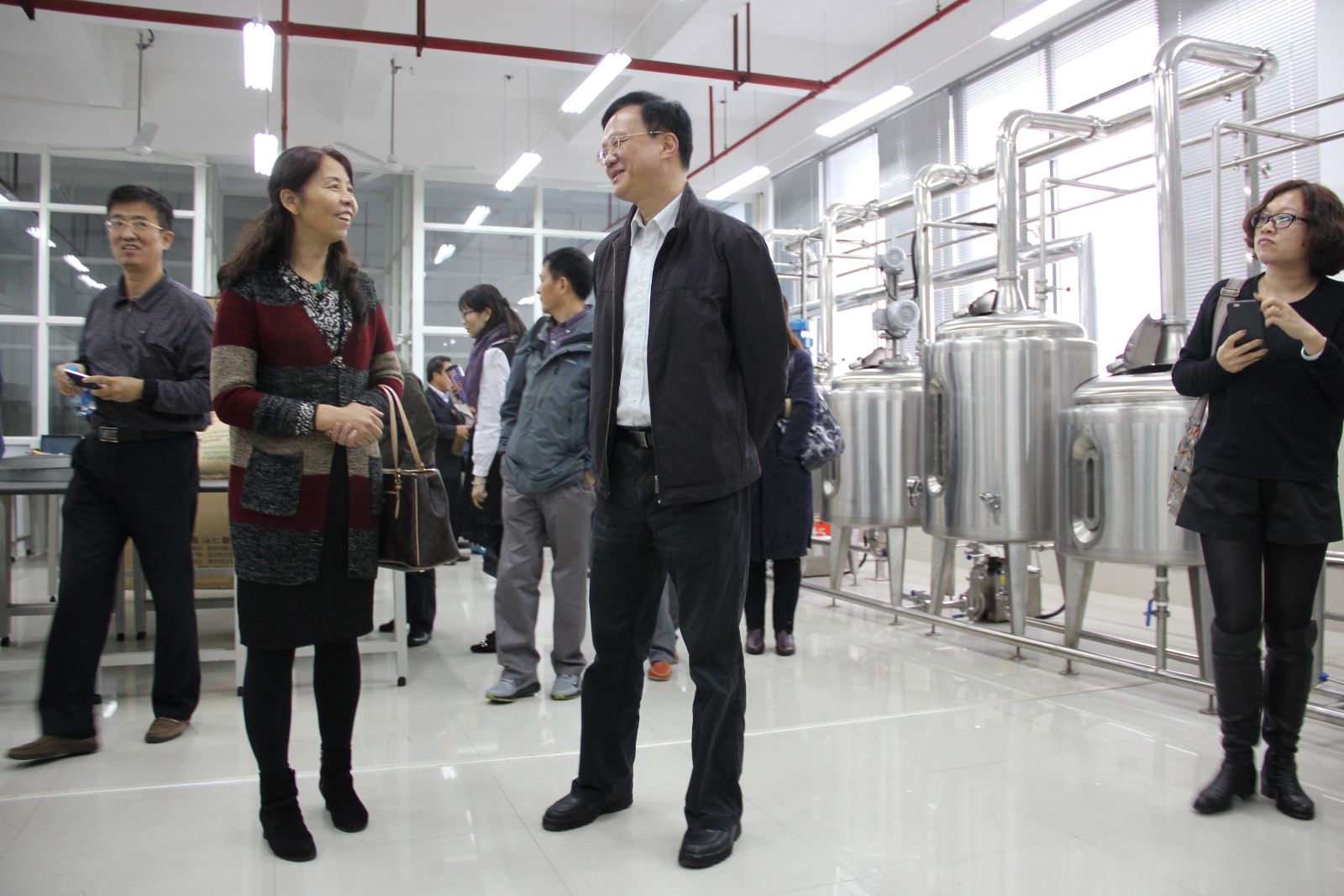 图3 参观啤酒发酵实训室