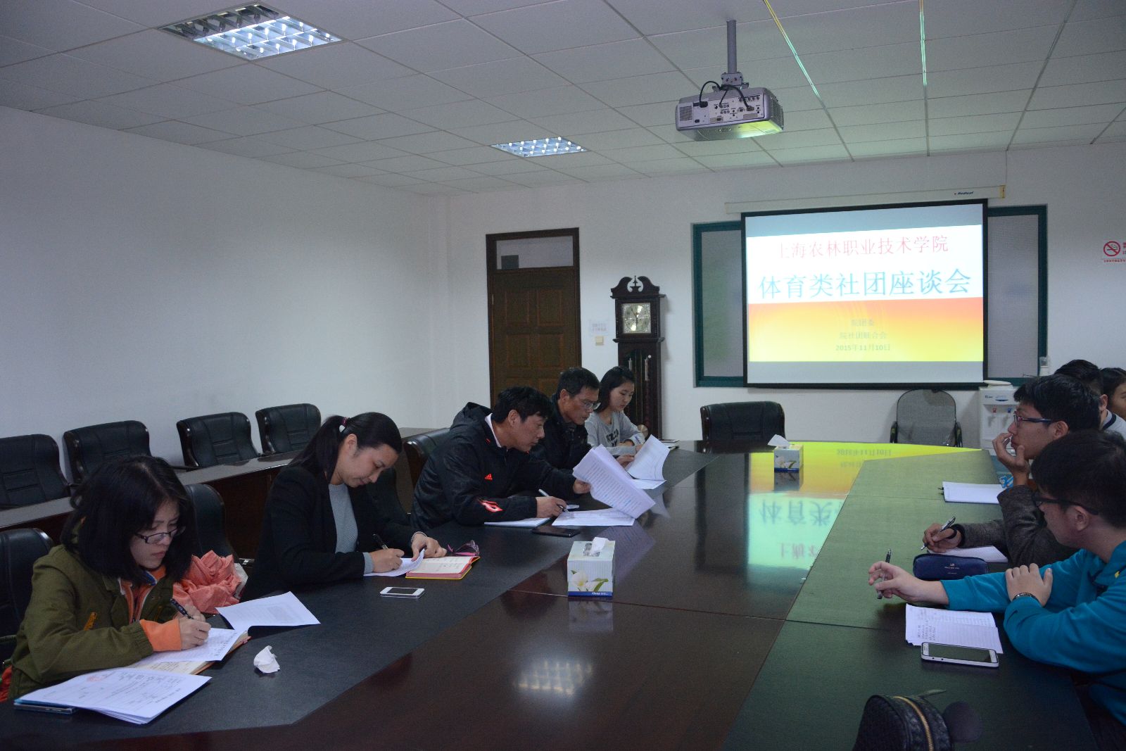 许昊针对目前体育社团活动开展过程中遇到的问题和困难进行了沟通,各社团负责人也对各自社团相关情况做了介绍,俞锦禄与相关老师就这些问题做了记录和解答。