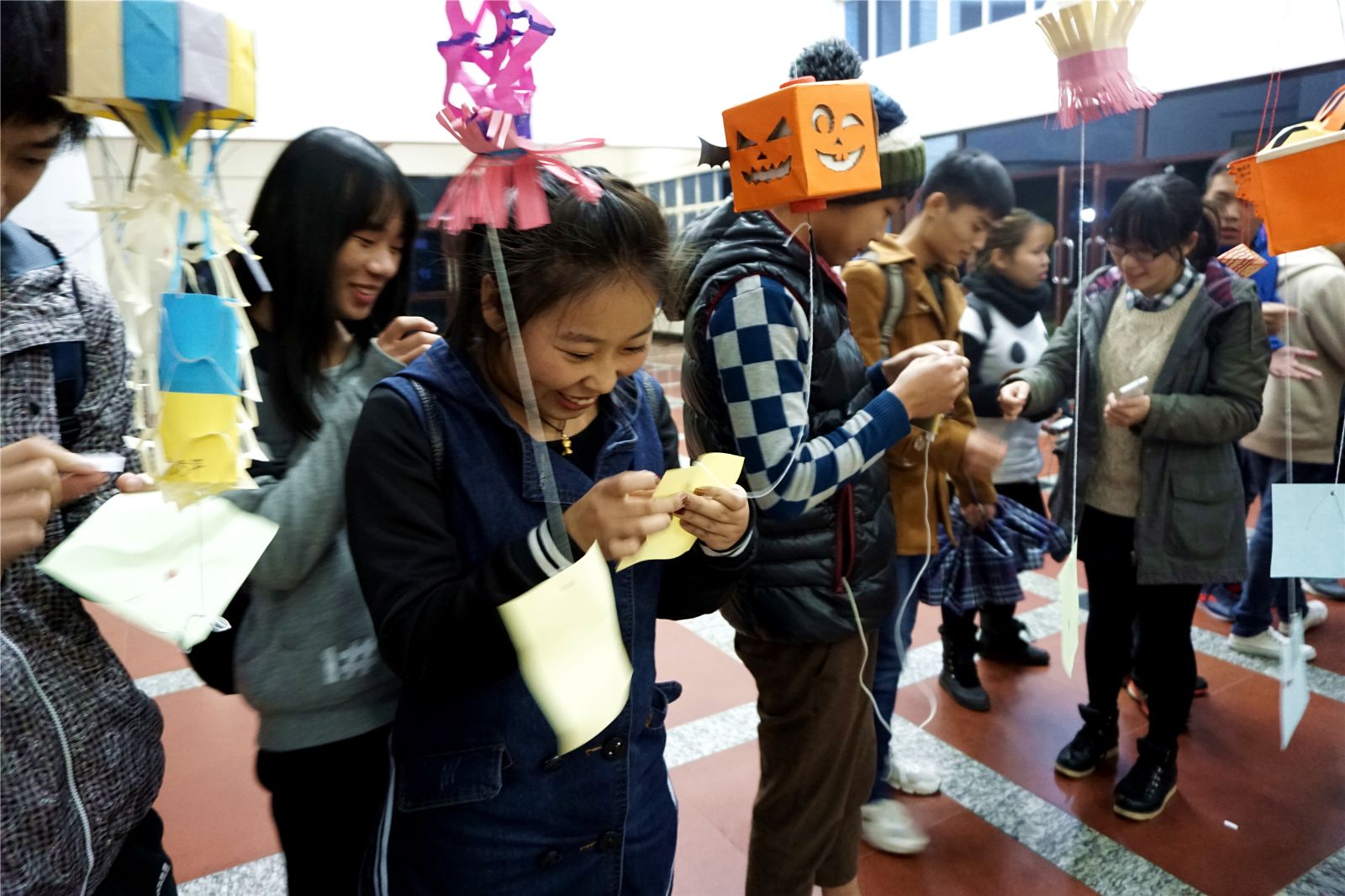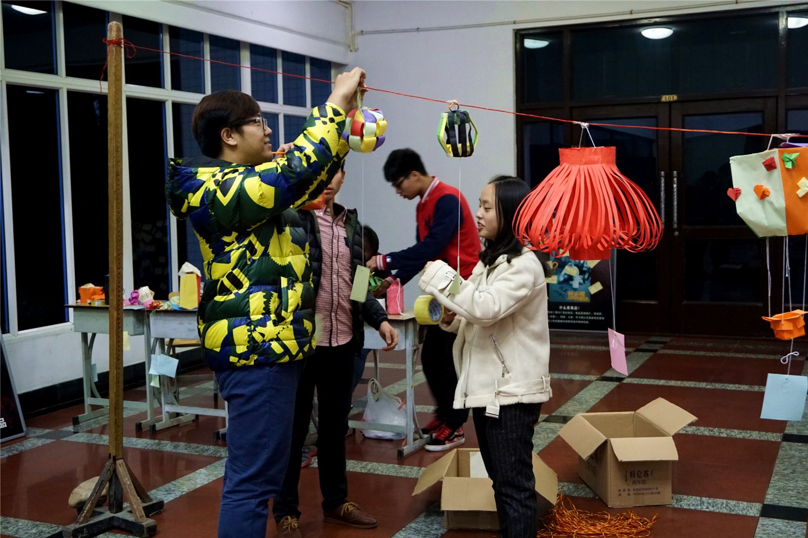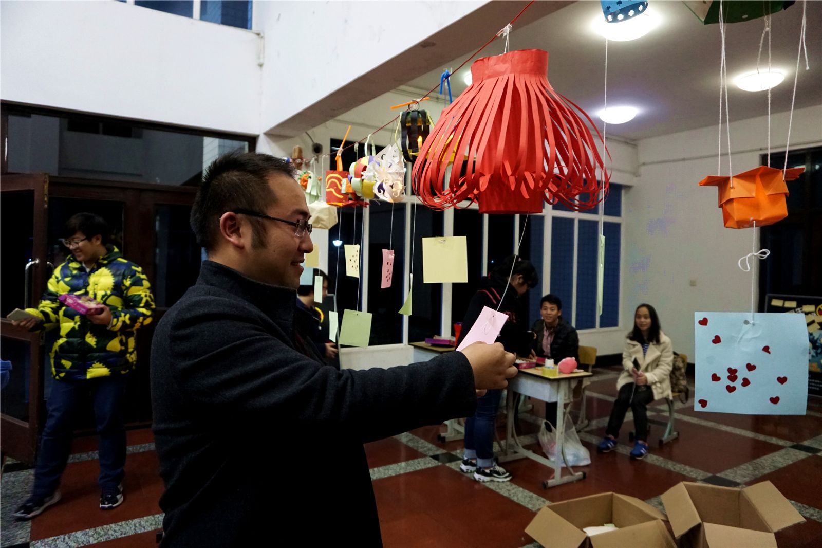 灯笼节自11月26日开幕,历经六天,共50余人参与,收集作品30余件。活动前期,主办方将制作材料分送给参赛者,由参赛选手发挥各自的奇思妙想,独立完成。12月2日晚,主办方将收集的作品在一教大厅展示,南瓜灯、蝴蝶灯、热气球等形态各异、造型百态的精致小灯笼熠熠生辉。待晚自习结束,一整排闪闪亮亮的灯笼吸引同学驻足观看,同学们纷纷惊叹制作者设计精巧,并为自己喜爱的灯笼“点赞”。几位晚自习值班的老师也忍不住为同学们投票。
