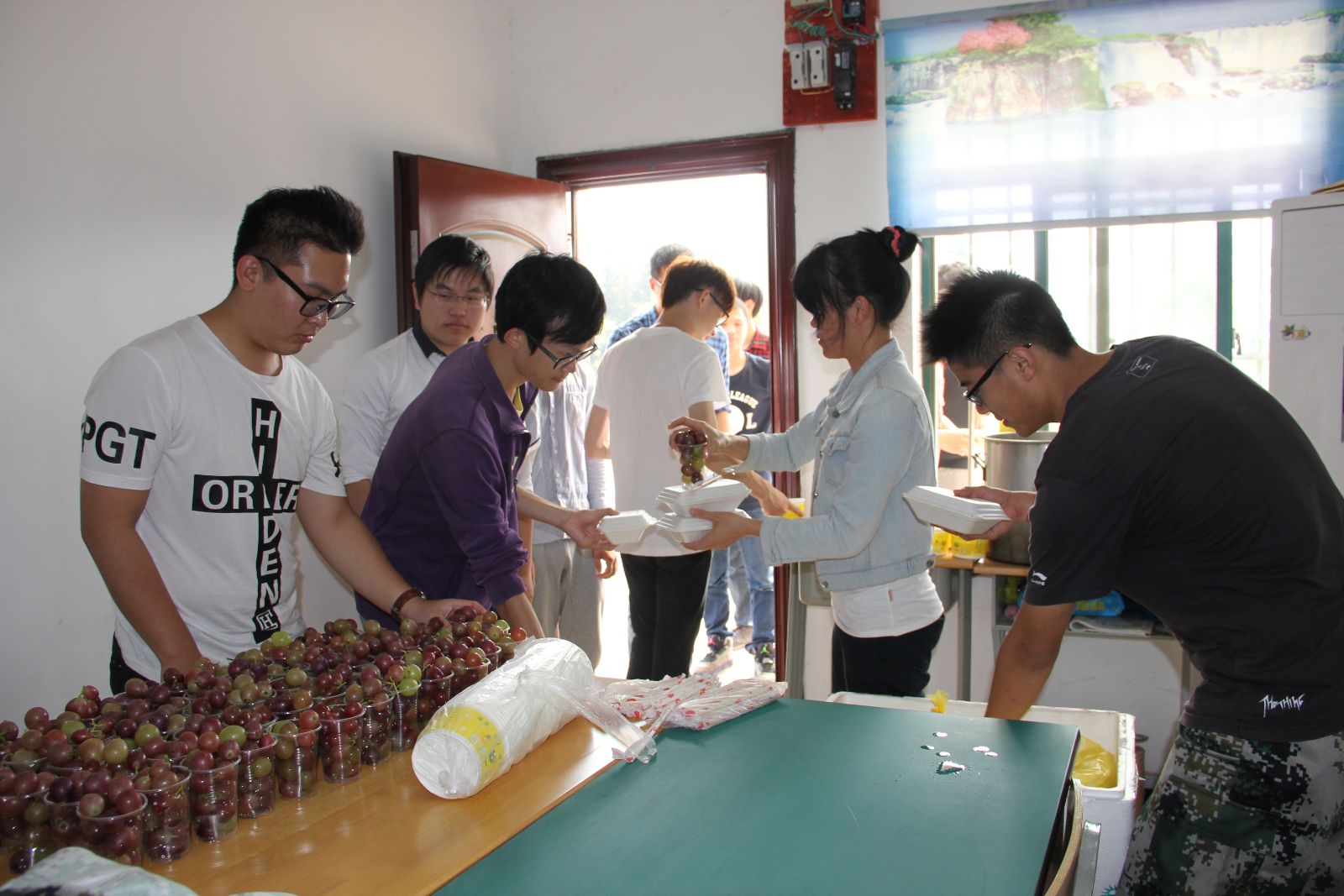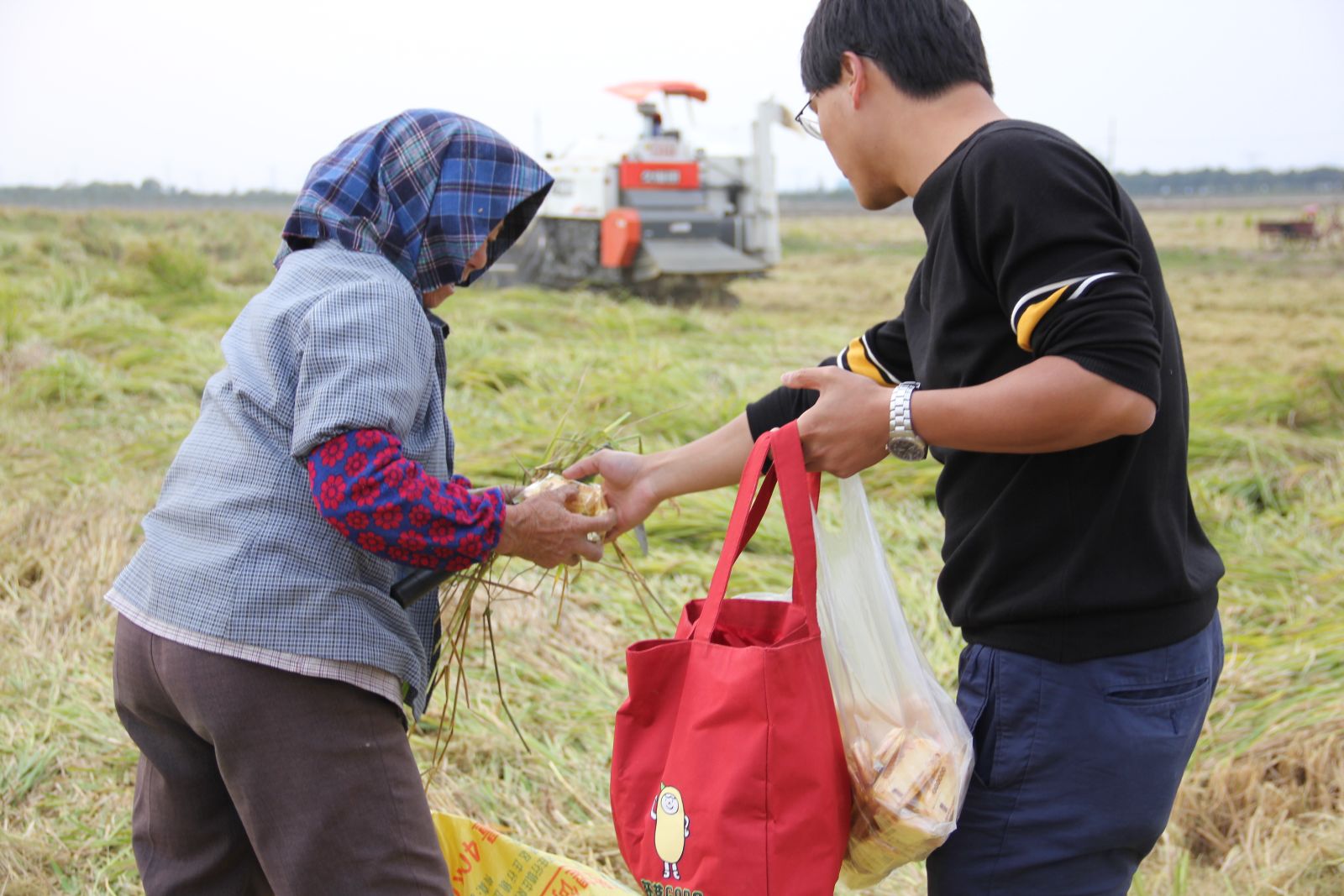 无论是学生实训安排还是基地承担的收割,后勤工作都少不了。由于收割历时较久,实训基地以轮流形式每次安排两名工作人员负责现场服务工作,提前统计工作人员人数安排客饭,就餐时客饭发放与就餐安排,餐后现场打扫以及饮用水、点心发放等相关后勤工作。各后勤人员都能做到明确工作职责、各司其职、服从分配、随叫随到,保证工作人员与学生正常就餐。