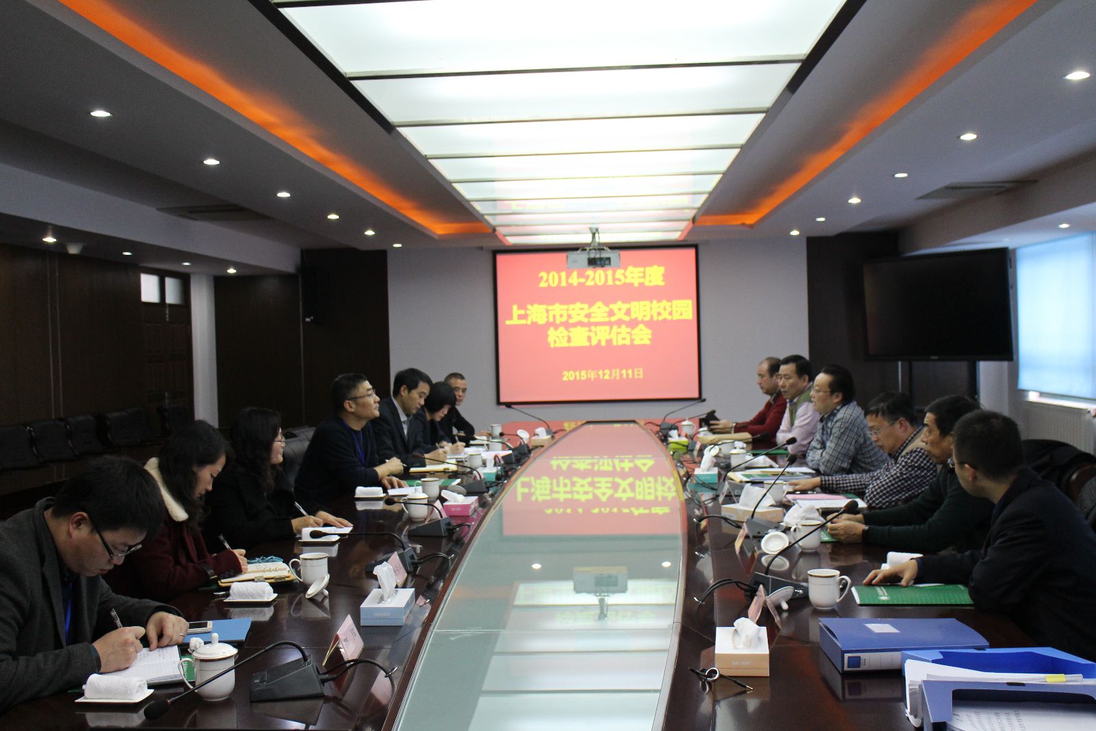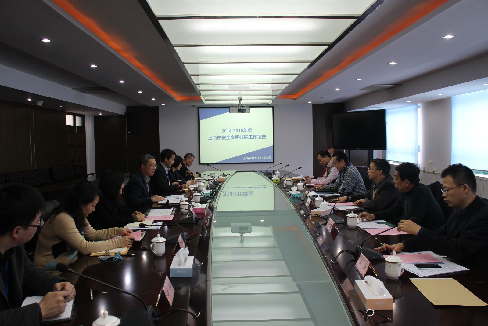12月11日下午,上海市教委安全稳定工作检查组一行6人,现场评估检查学院创建“上海市安全文明校园”情况。学院党委书记吴乃山,党委委员、副院长仲肇森,分管领导费国强出席会议,相关职能部门负责人和保卫处全体同志参加会议。吴乃山主持汇报会。