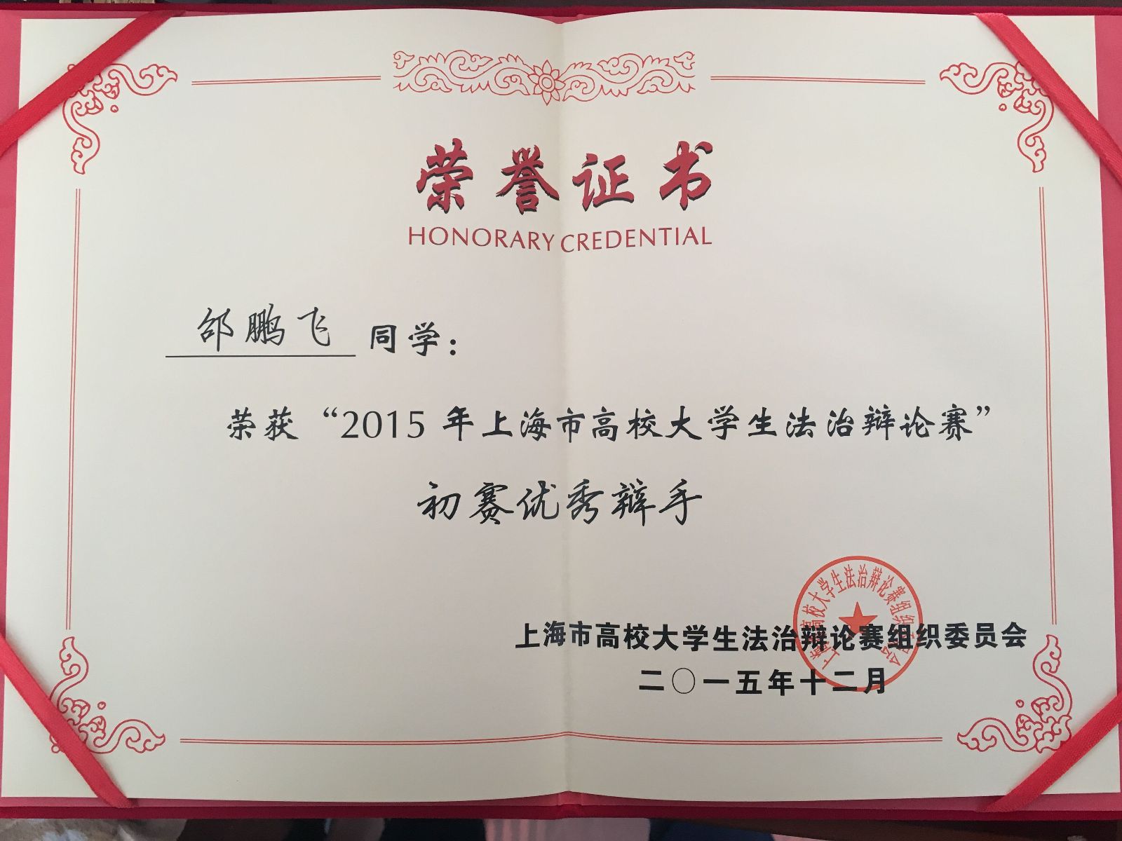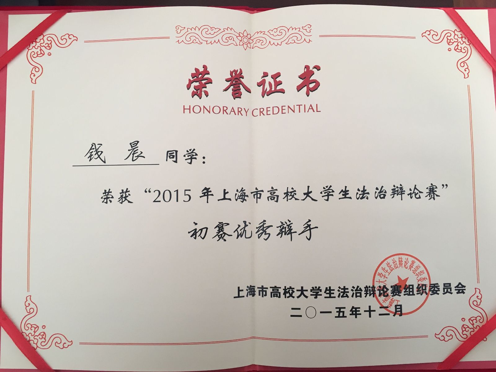 近日,2015年上海市高校大学生法治辩论赛在上海政法学院落下帷幕,我院荣获大赛优秀组织奖,钱晨、邵鹏飞同学荣获初赛优秀辩手。