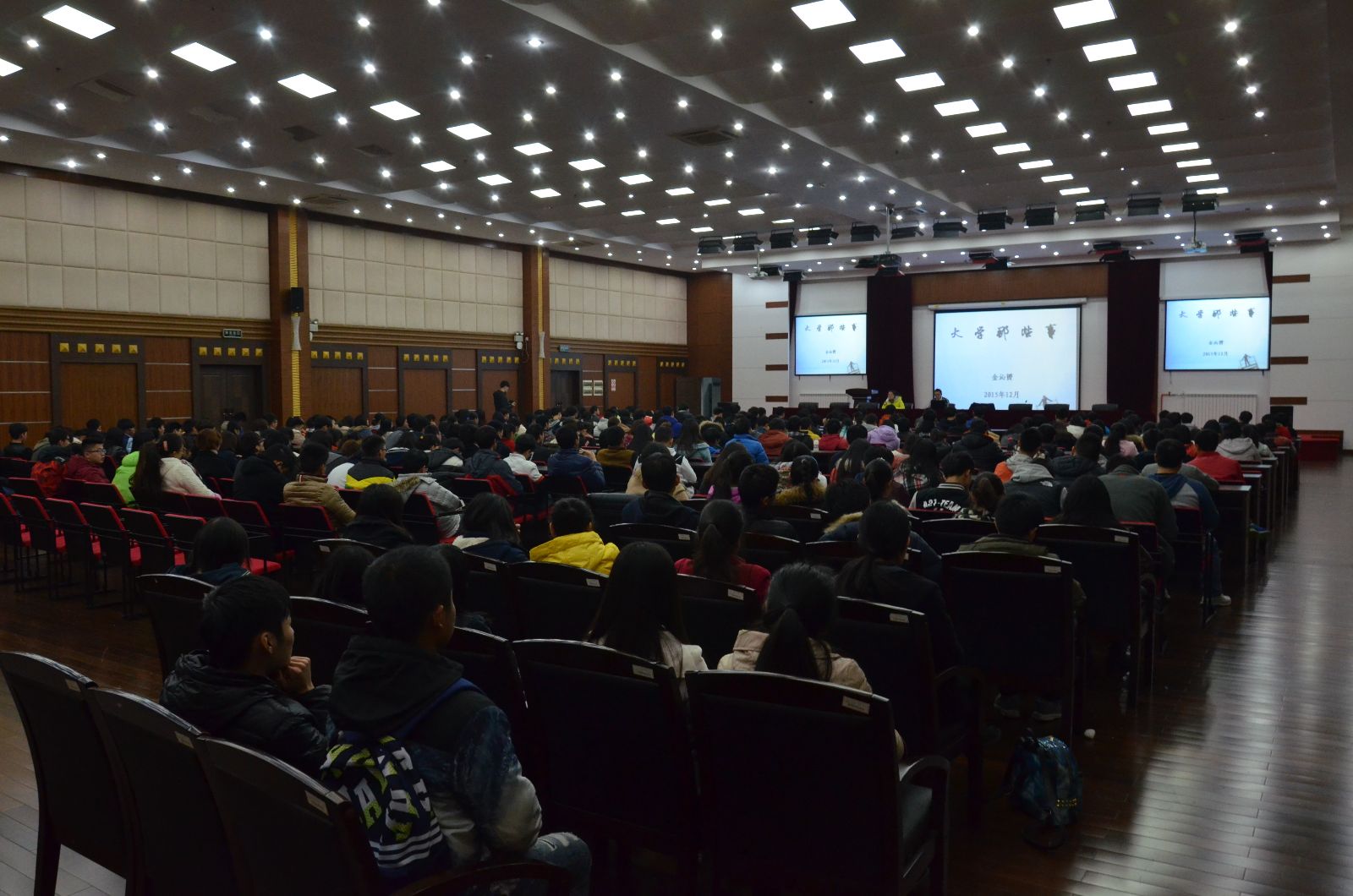 12月15日,园艺园林系2014届优秀毕业生金沁赟同学回校为2015级新生作了“大学那些事”主题讲座,会议由系党支部书记高东菊主持,系部369名新生参加。