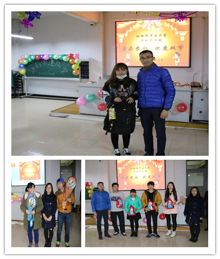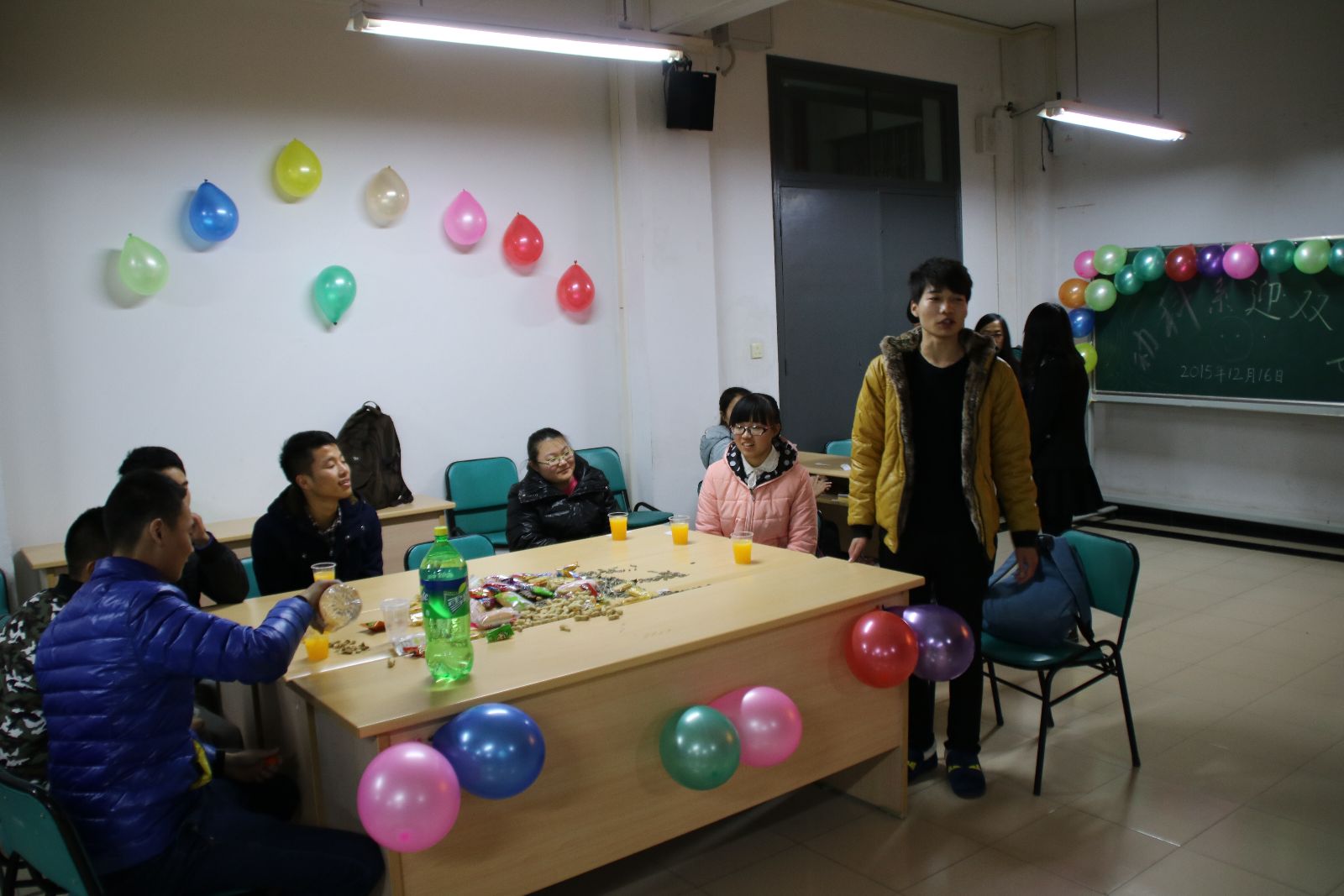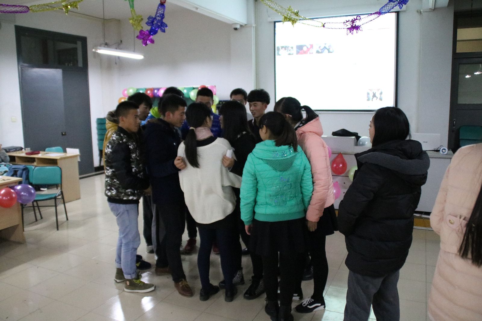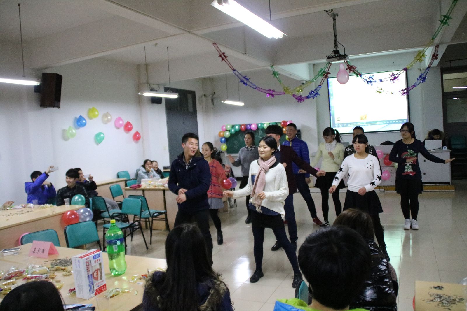 本次联欢会以集体座谈、送温暖及娱乐活动的形式穿插进行。作为暖场的集体座谈环节中,同学们进行了简短的自我介绍,包括家庭、学习、生活等情况,增进了彼此之间的了解。随后,丁雨婷同学表演了口琴吹奏《月亮代表我的心》,传达了同学们在外求学的思乡之情。何结祥和温振宇两位同学的歌曲串烧也赢得了老师、同学们的阵阵掌声。更有钟水英等6名同学表演的舞蹈《小苹果》,提前为大家送上了圣诞节“苹果”,将联欢会气氛推向高潮。联欢会的三个小游戏“萝卜蹲”“比手画脚”和“抱一抱”充分调动起老师和同学们的积极性,大家争相参与,默契配合,获得了一个又一个的奖品。抽奖环节产生的一、二、三等奖及阳光普照奖真正地把温暖送到了每位同学的手上。活动现场笑声不断,其乐融融。