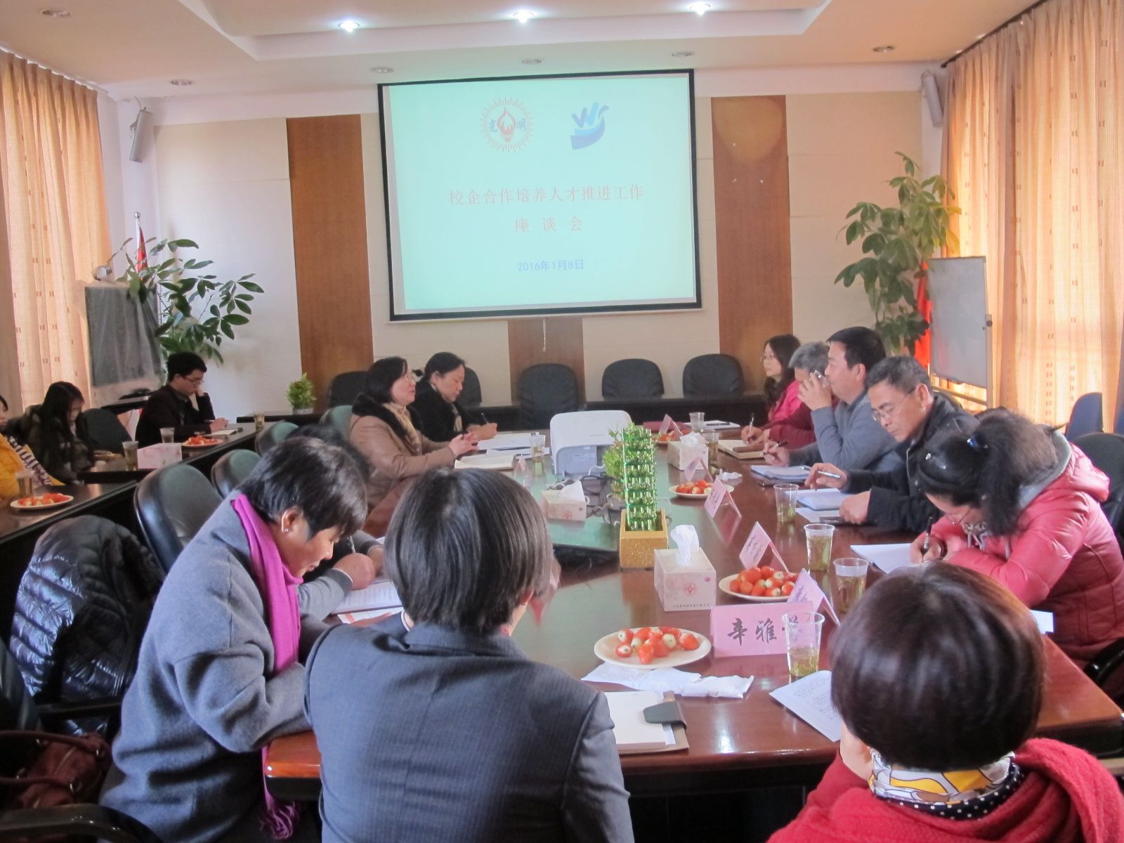 1月11日下午,学院与光明食品集团上海五四有限公司在该公司总部举行校企合作培养人才推进工作座谈会,副院长谢锦平带队,教务处、园艺园林系、农业经济管理系、校企合作办等部门负责人与五四公司领导及相关人员参加会议,会议由五四公司人力资源部经理赵来芳主持。
