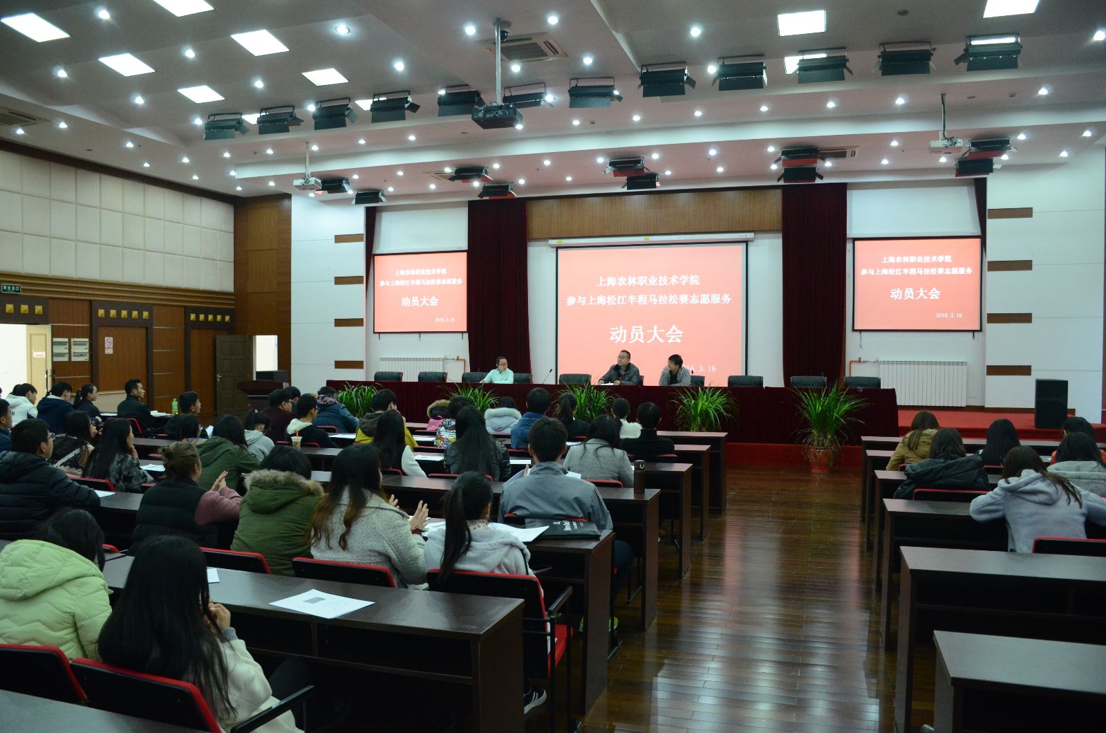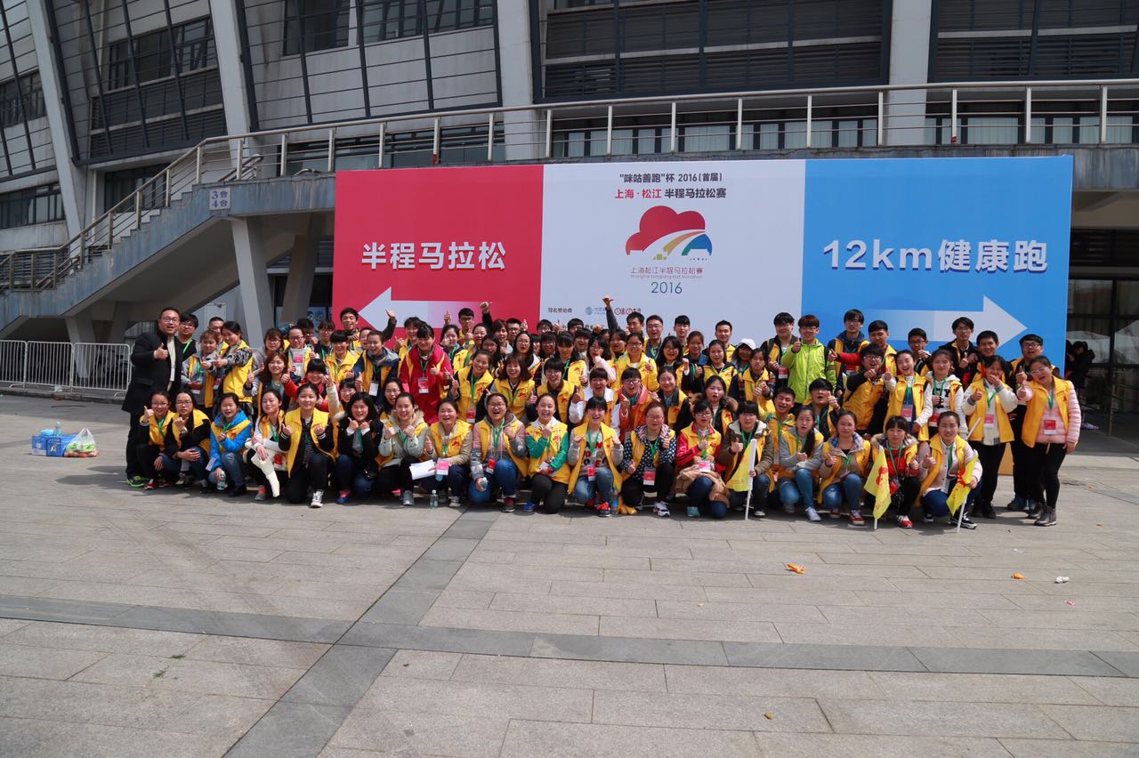 3月20日,2016(首届)上海松江半程马拉松赛在上海欢乐谷启程,来自多个国家和地区的近万名选手迎着朝阳起跑。我院100名志愿者分成八组,在赛道10公里—19公里补给点承担志愿服务,为赛事的成功举行付出了辛勤和汗水。