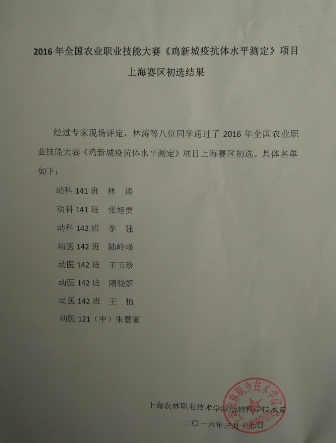 2016年全国农业职业技能大赛《鸡新城疫抗体水平测定》项目将于5月份在江苏农林职业技术学院举行,我院作为上海地区该项目唯一一所参赛高校,动物科学技术系师生为“赛出水平 勇争第一”的目标,正在紧锣密鼓的备赛中。