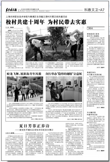 今天,东方城乡报在第A07:科教文卫版头条报道了学院与青浦区金泽镇王港村开展文明共建活动情况。