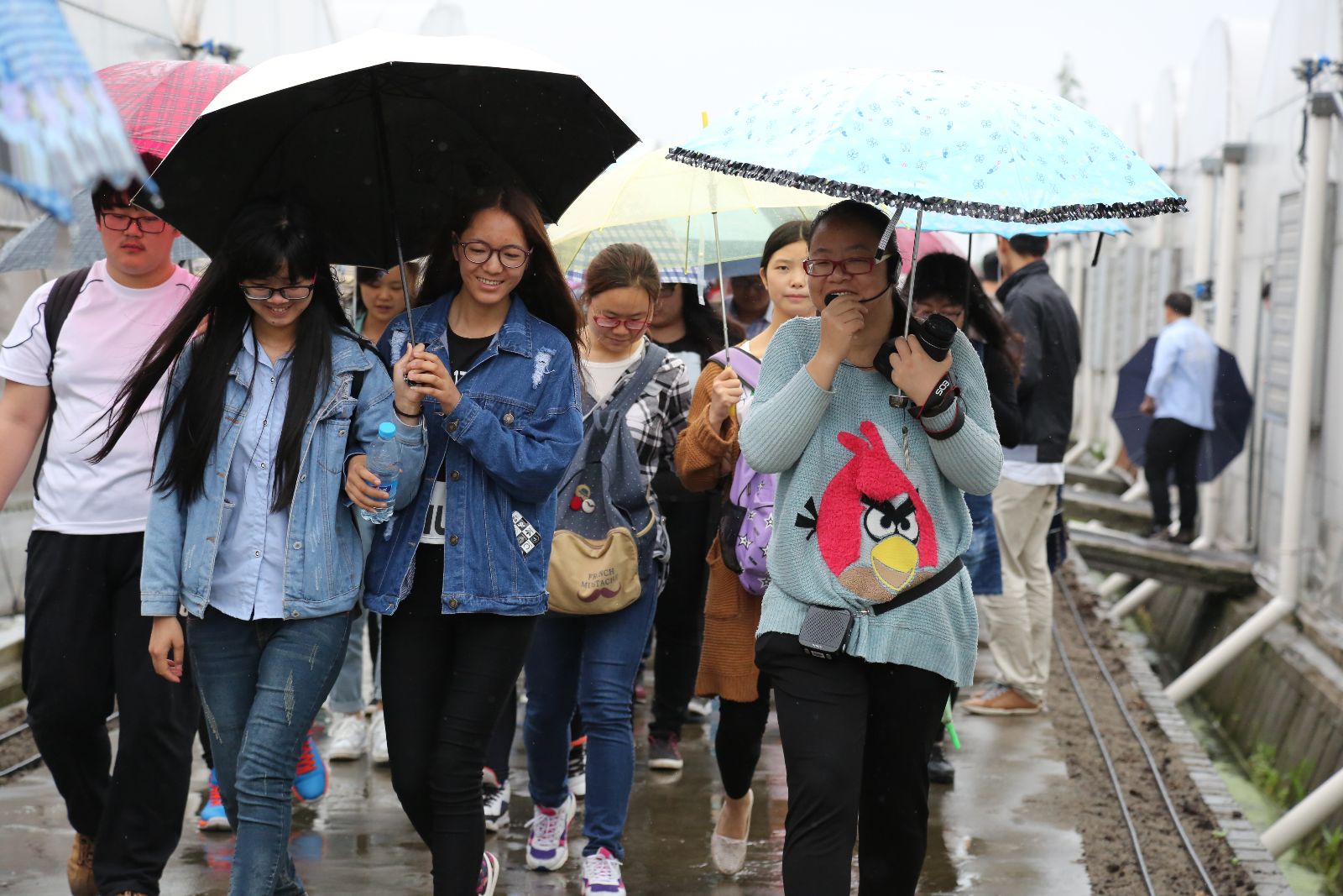 学生参观温室大棚