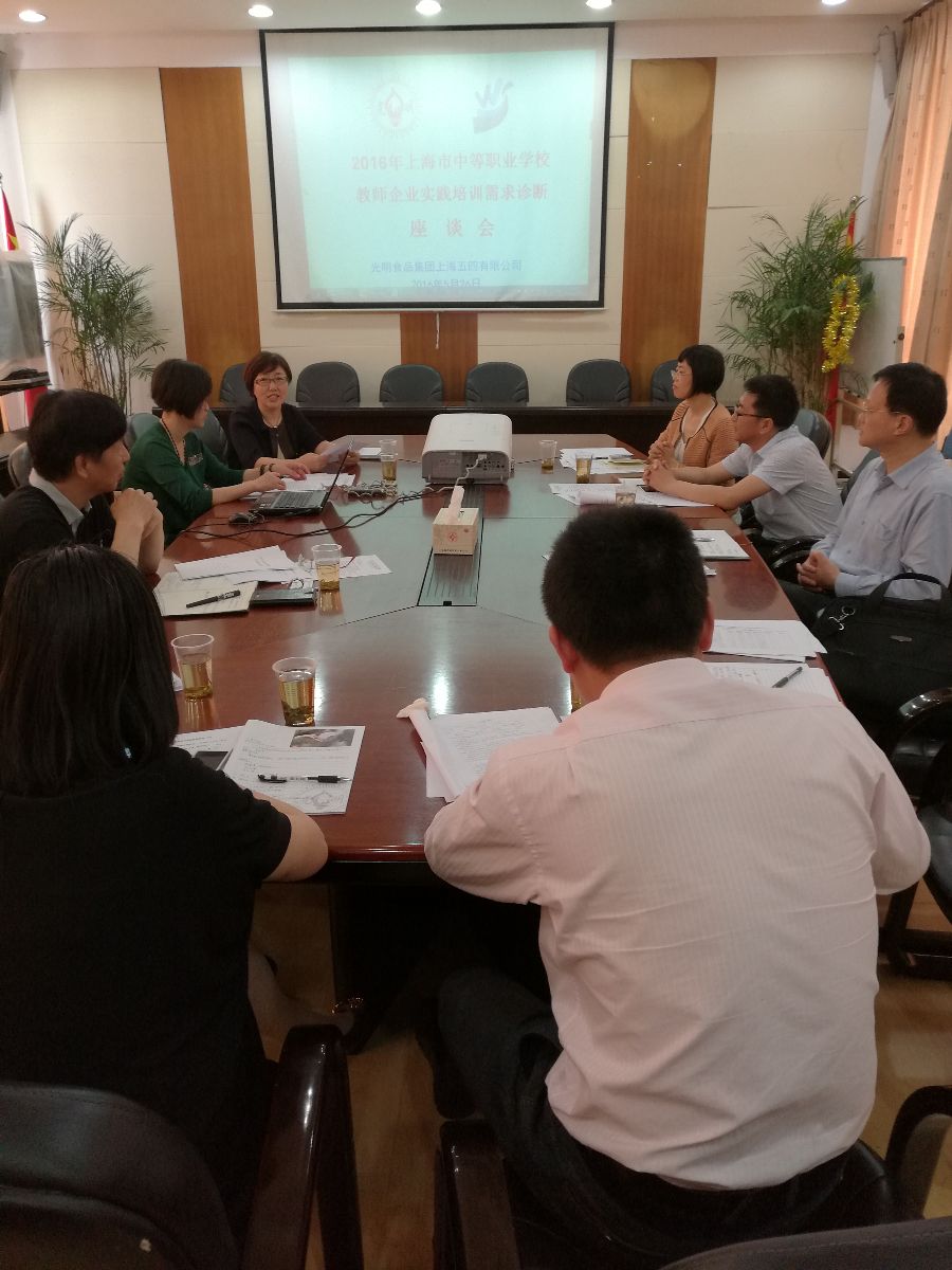 5月26日,现代农业职教集团在五四有限公司举行参培教师需求诊断会,市教委师资培训中心专家庄保勤、职教集团理事长魏华出席,五四公司人力资源部副经理蔡雪雅、培训项目负责人顾巧英、三位带教老师顾大国、吴中波及罗清莲、以及来自奉贤中专的周大勇及我院席银宝两名实践教师参加了会议,会议由校企合作办主任辛雅芬主持。