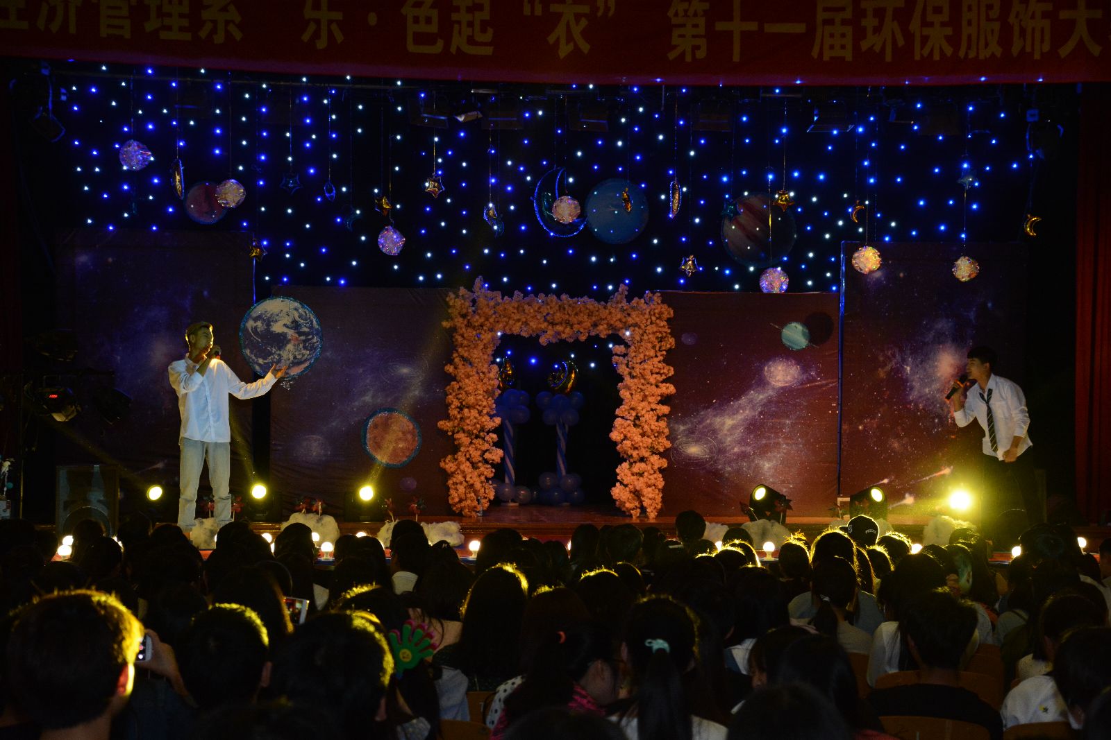 为配合活动顺利开展,农经系的同学们特意排练了情景舞蹈秀和灯光秀。其中,刘凯瑞、王昌阁同学带来的歌曲《离开地球表面》,让全场观众沉醉在了音乐的海洋中,随之欢呼、舞动;姑娘们带来的舞蹈《青春风采》,跳出了大学生的青春风貌,将全场气氛推向高潮;团学干部带来的深情合唱《祝你一路顺风》,让台下观众为之动容,随之和唱,产生共鸣。期间,比赛还穿插抽奖环节,增强活动的趣味性。