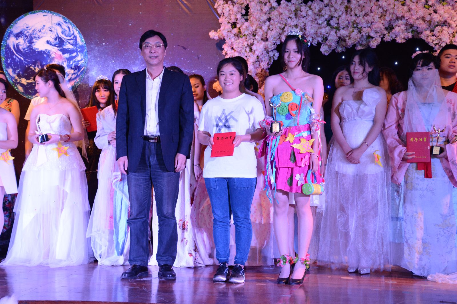 最终,旅管151班王湘楠同学设计的38号作品《flower香蜜》获得环保服饰大赛一等奖,作物141班赵晓虹的《luxurious》以及商管141班纪苏苏的《绿野仙踪》获得二等奖。观光132班顾磊的《shadow voice》、农经141班梁译巍、邓佳裴的《Dream rider》以及园艺(中)141班姚远的《晚霞》获得三等奖。最佳模特由旅管141班施杨与农经151班潘潇潇夺得。另外,观光152班赵雨蓉等9名同学设计的作品获得优胜奖以及最佳创意奖、最佳环保奖、最佳设计奖、最佳手稿奖。