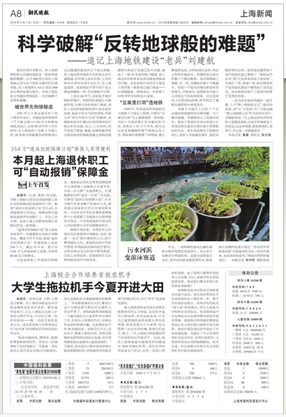 8月1日,新民晚报头版要闻版以标题形式,报道了我院大学生下田当拖拉机手。文字报道详见A08版上海新闻。同时,该报道还被新民网头条、农机通讯社、凤凰网、中国网等网站转载。