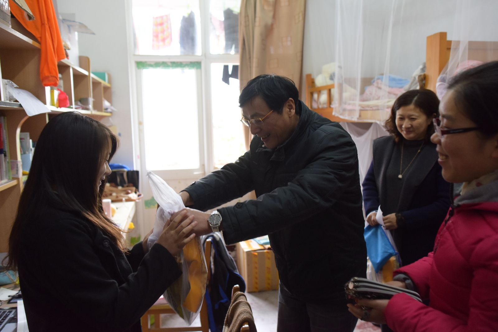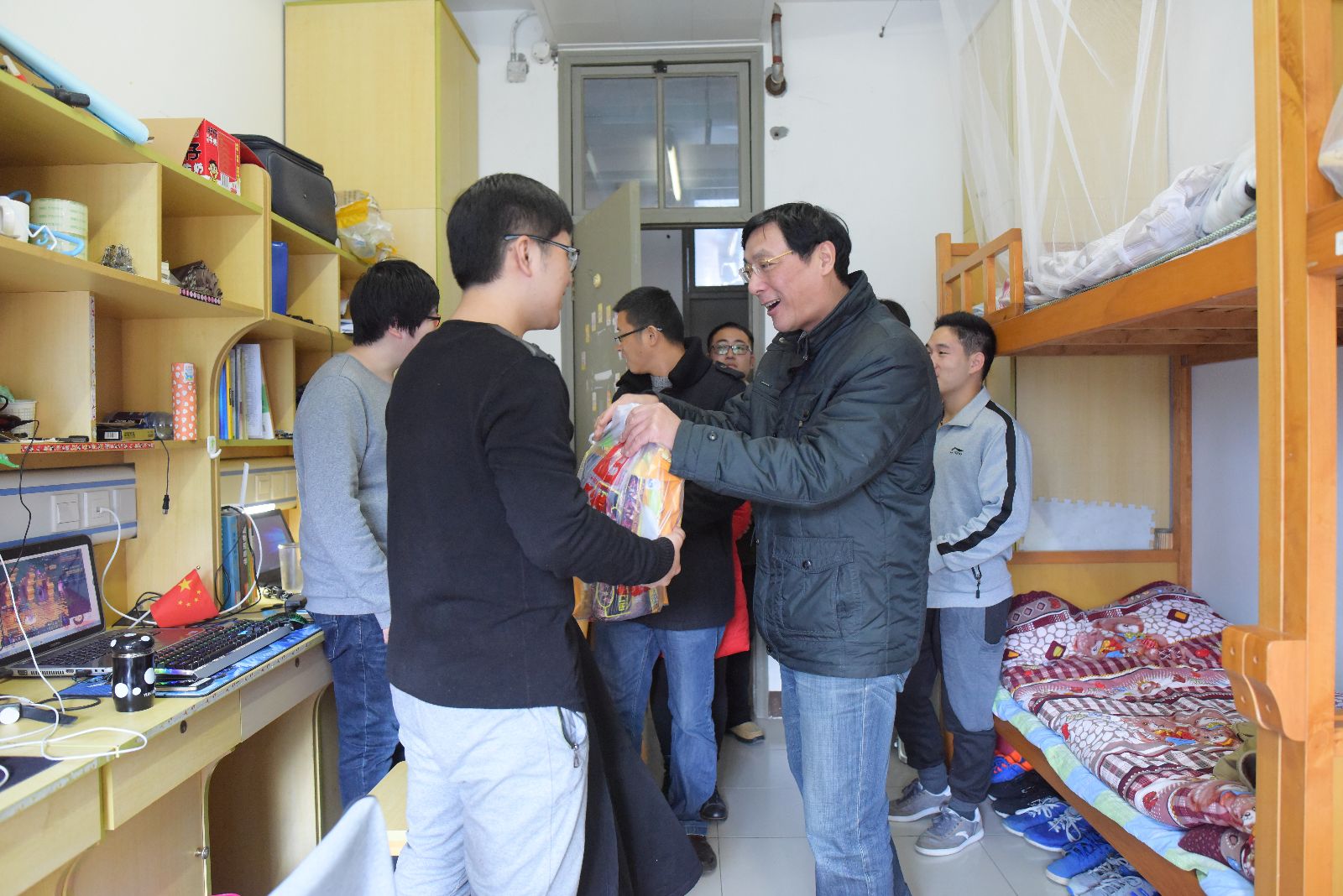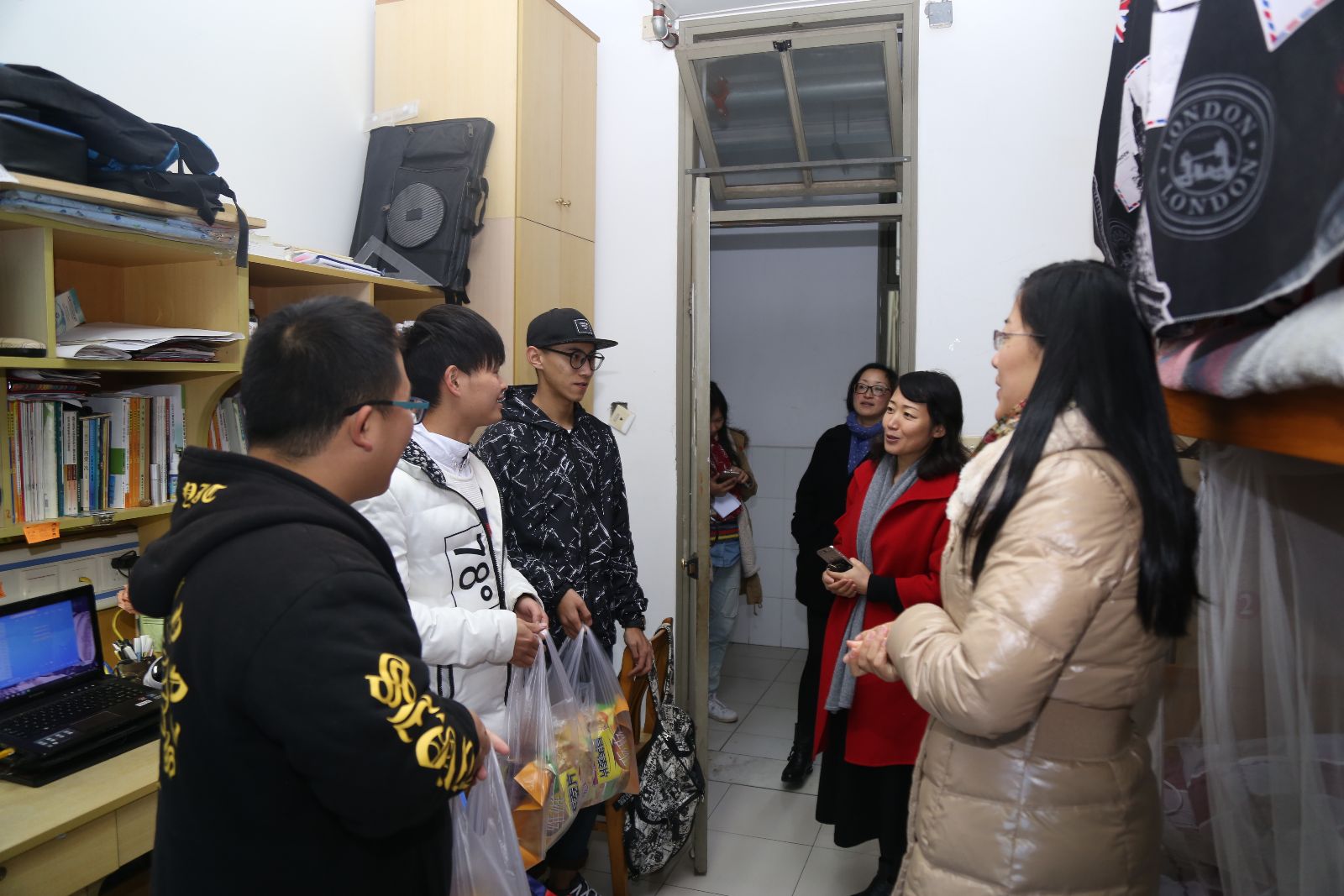 11月29日,学院党委副书记俞锦禄、学生处处长刘秀云、团委书记许昊、各系学生工作负责人、团总支书记和辅导员一行来到学生宿舍,问候和看望了无偿献血的学生。