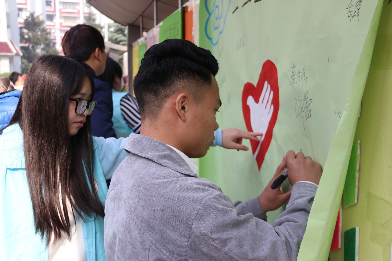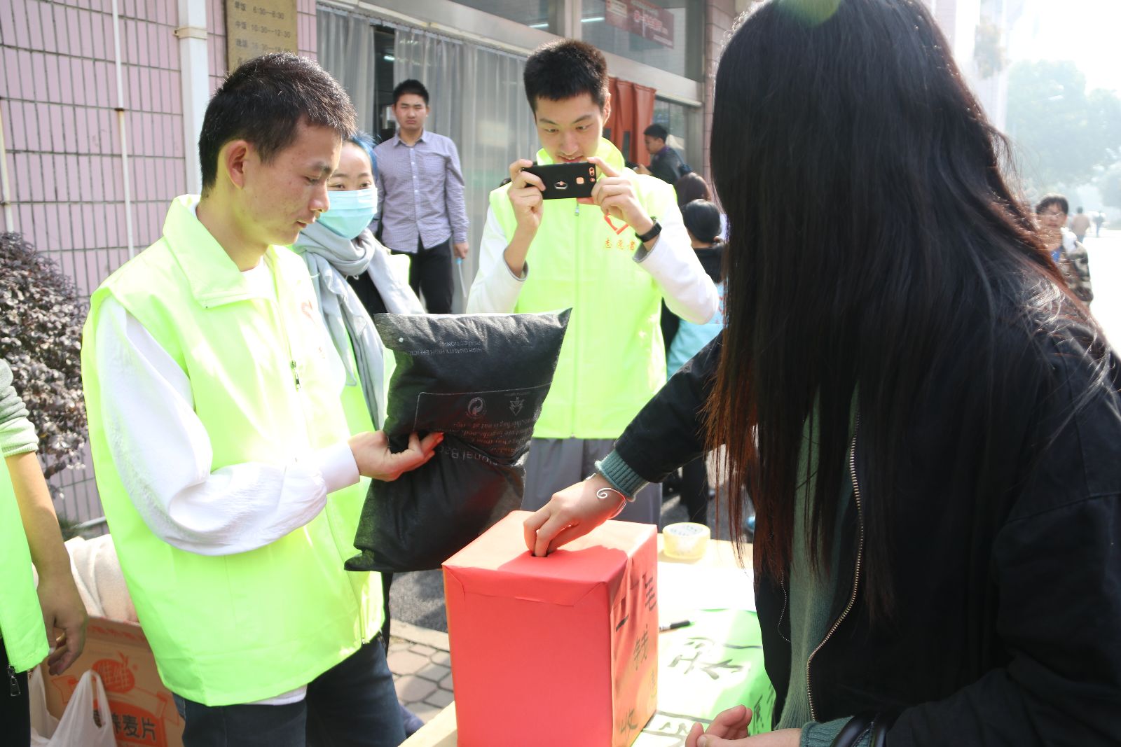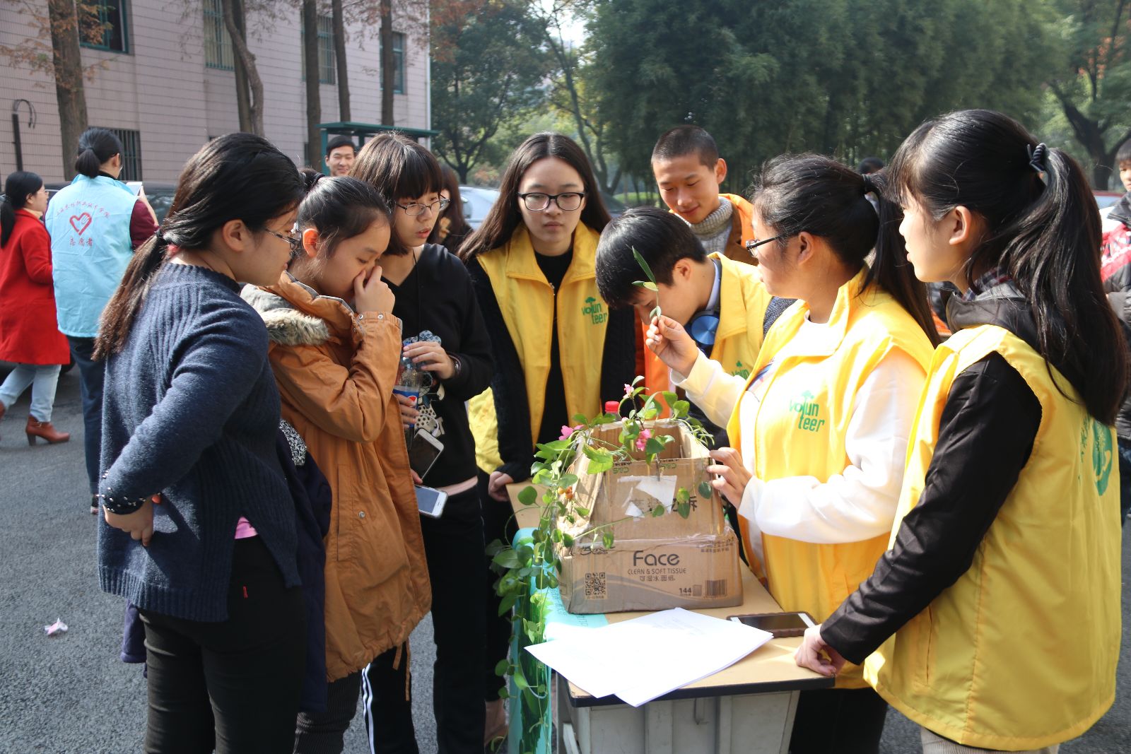 12月5日—6日,院团委组织各系志愿者服务队,在学生事务楼广场前开展志愿服务集中活动。活动现场100余名志愿者为500余名学生提供一系列志愿服务,包括大学生志愿服务现状调查问卷、给志愿者的一句话、爱心捐衣、志愿词条你画我猜、手机辐射测量及贴膜活动、植物名竞猜、野生动物识别等服务项目。整场活动气氛热烈又不乏趣味,让同学们在参与活动过程中切实感受到志愿者传递的正能量。