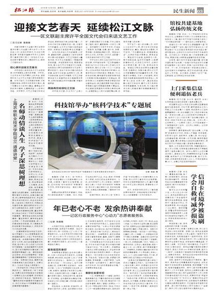 12月9日,松江报在第3版民生新闻版,报道了我院开展道德讲堂的盛况。开展道德讲堂,既是我院复评全国文明单位的工作要求,也是我院思想政治理论教学课教学改革的重要部分。今年我院邀请上海大学教授忻平、上海海洋大学教授董玉来、华东师范大学教授王建新3位教授分别开讲,参加对象为2016级全体高职学生和2014级中高贯通班学生,超过4000人次,并将进行线上传播,方便师生深入学习、领悟和提高。