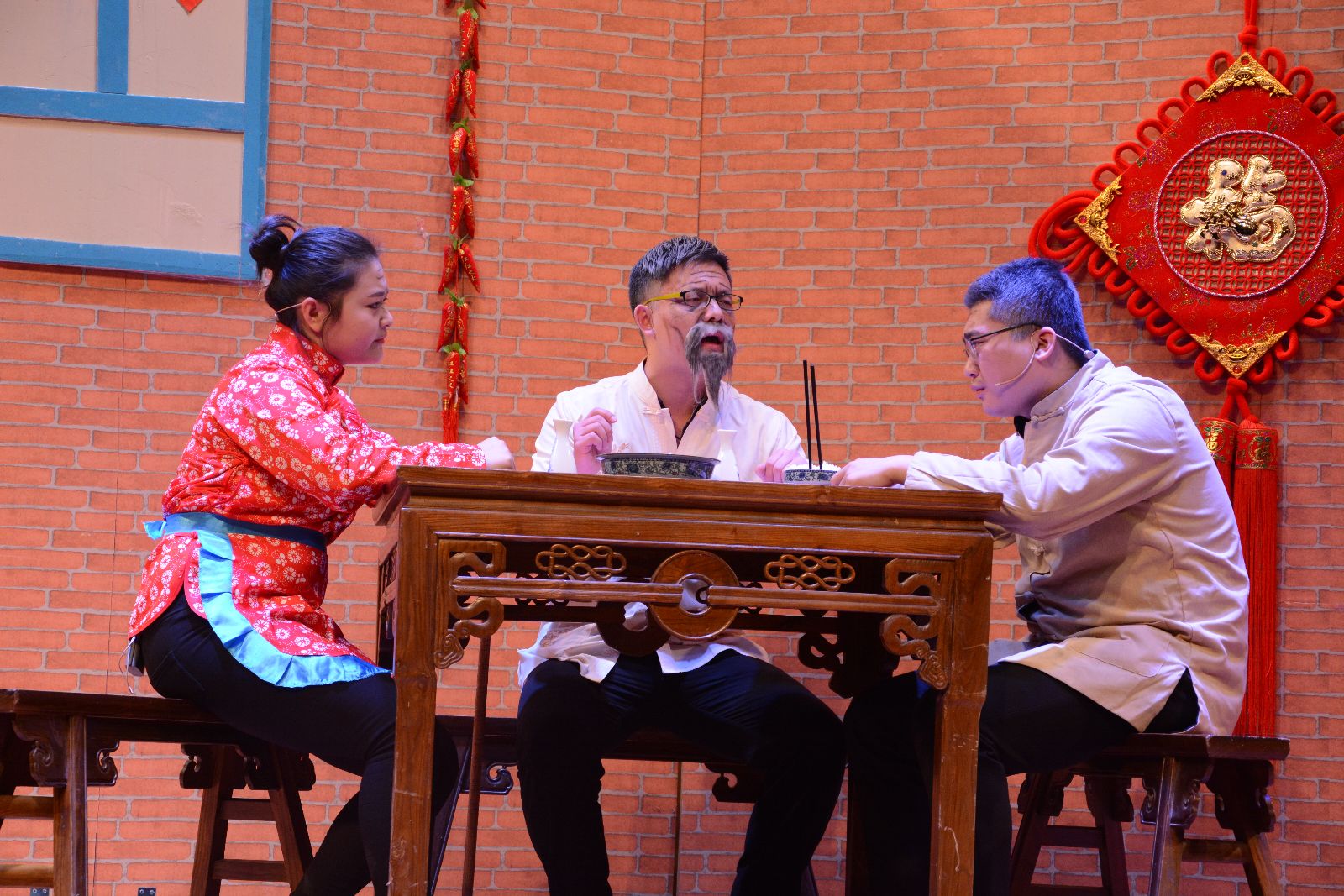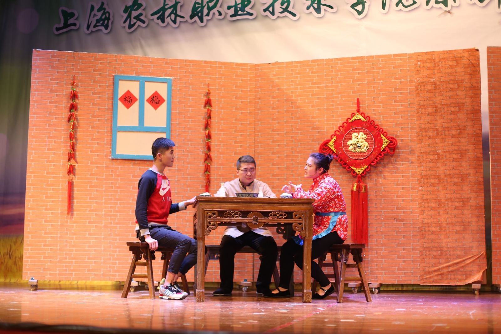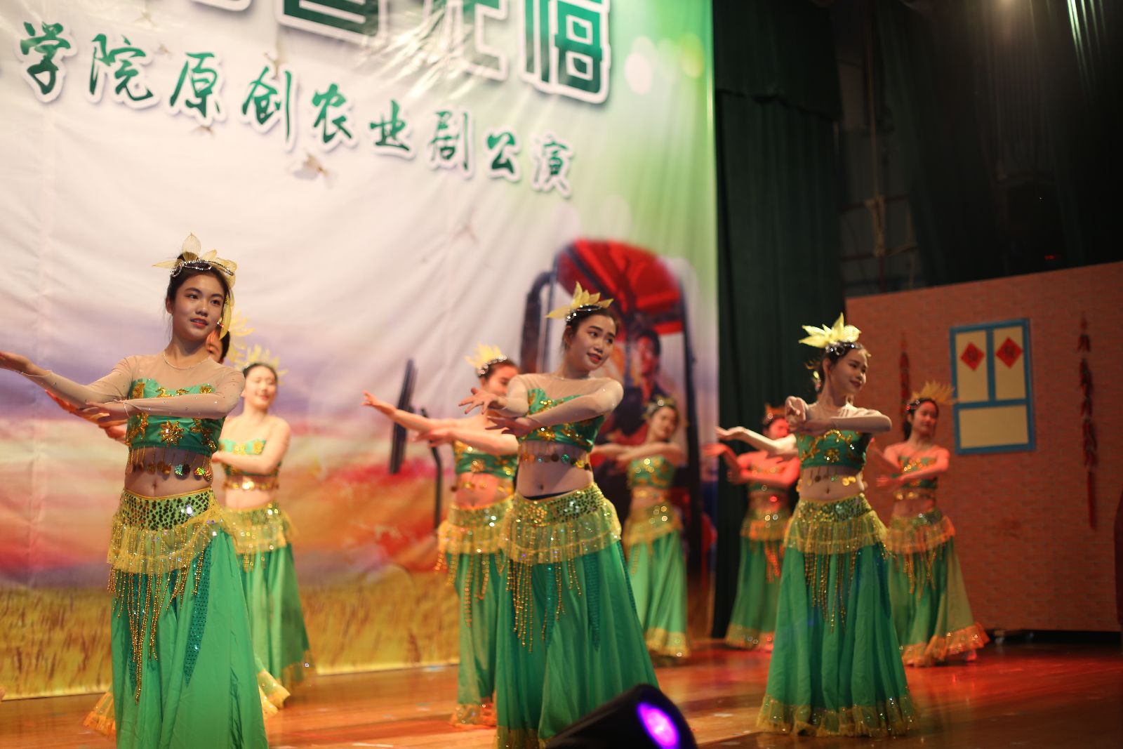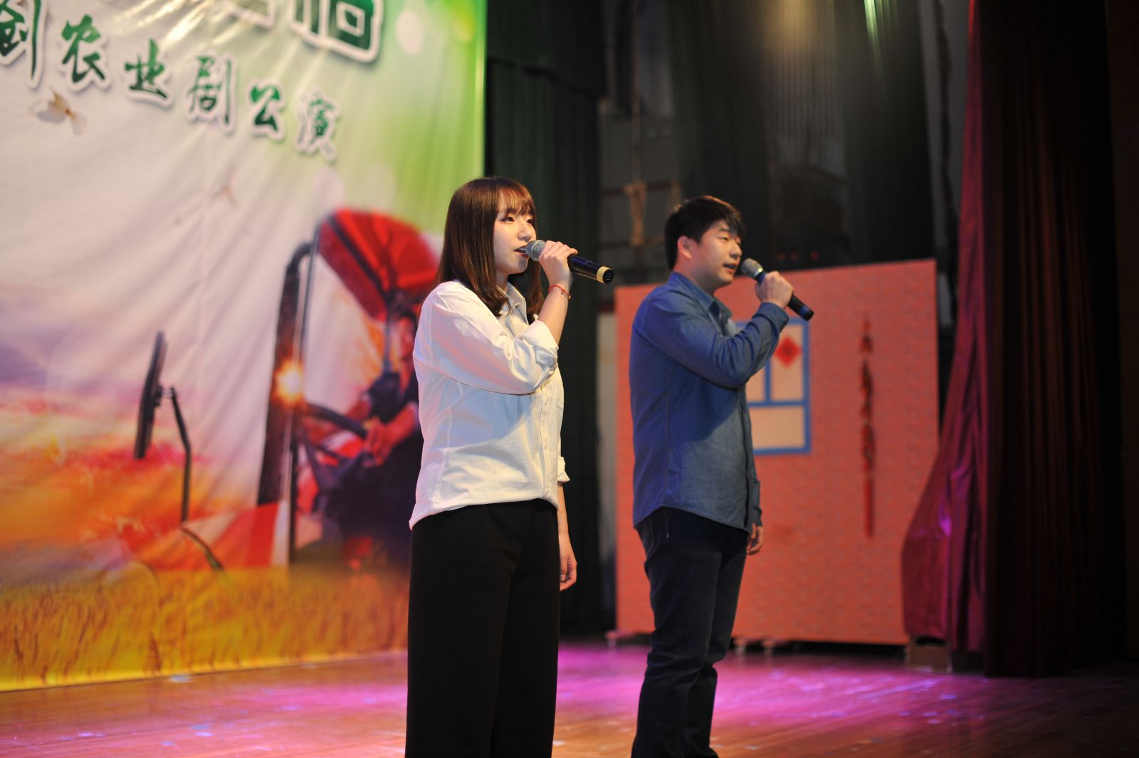 农业剧《三农有梦,青春无悔》由我院师生自编、自导、自演。该剧以白尚农、黑乐耕两位主人公在农村的生活点滴为主线,将新农业、新农村、新农民的发展历程通过幽默诙谐的人物对白、发人深省的剧情内容呈现出来,激发上农学子投身农业的热情,坚定从事农业的决心,以“学农、爱农、务农”为荣。剧中黑土的扮演者是园林152班张振洲,白云的扮演者是设施152班乔粒粒,青山的扮演者是网络162班王治辉,其余由大学生艺术团舞蹈队、演艺队、声乐队、民乐队等同学共同参演。