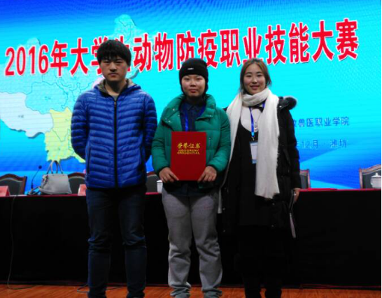 由中国现代畜牧业职教集团举办的2016年大学生动物防疫职业技能大赛,于12月9日至10日在山东畜牧兽医职业学院举行。来自全国21所院校36支代表队的108名选手参加了比赛,每支代表队3名选手;我院动科系派出动医151班周献勇、丁雨婷和动医161班张筱彤三位同学参加比赛,曹彩琴和滑志民担任指导教师。