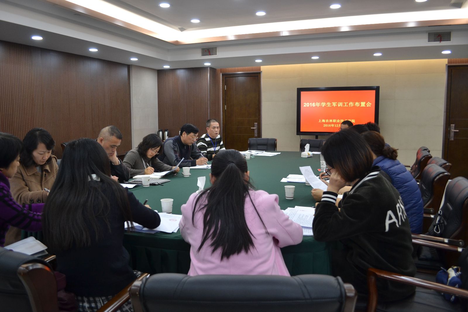 12月13日下午,在第四会议室,学院(农校)召开2016级学生军训工作布置会。党委副书记、副院长俞锦禄出席会议并讲话。教务处、学生处、团委、宣传处、人事处、后保处、武装部及各系学生工作负责人参加会议。武装部部长郁海根主持会议。