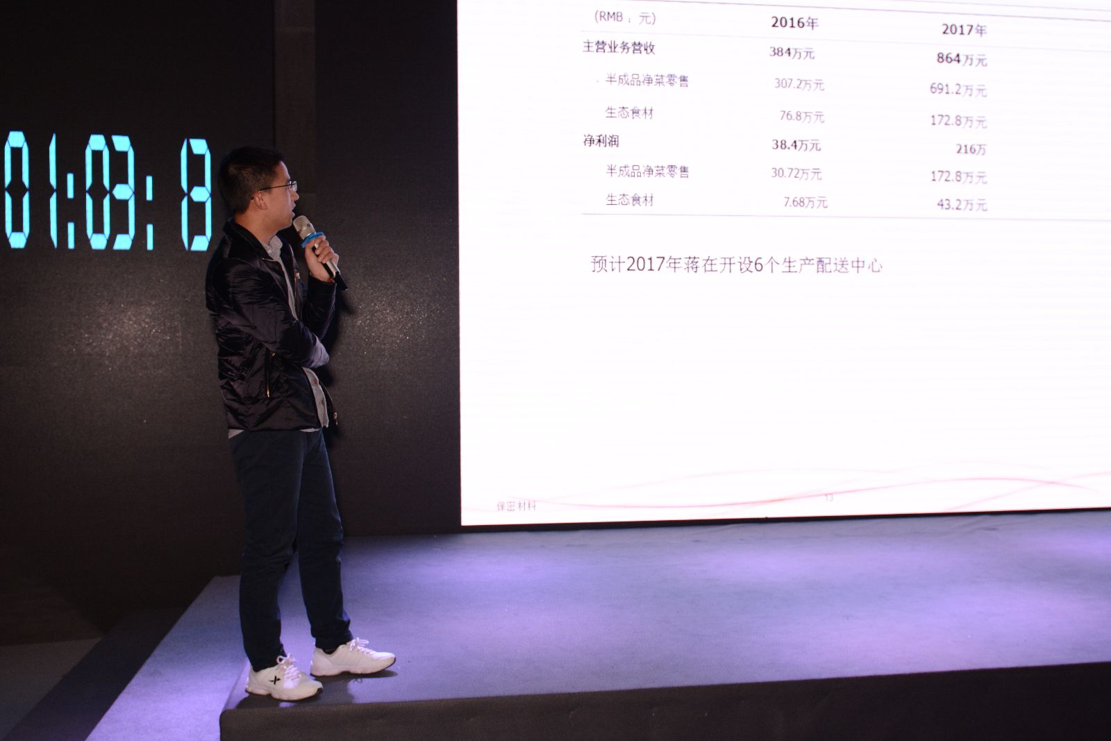 决赛现场采取项目路演的形式进行现场答辩。来自10个不同院校,涉及科技、文化、服务、设计等方面的创业项目,用1分钟的视频简介和五分钟的项目演讲向现场评委、专家做展示。蔬菜庄园项目是现场唯一一个农业类项目,创始人涂晨阳同学用充实详尽的分析数据,精准客观的市场定位,成熟稳定的经营模式结合互联网平台营销充分向评委介绍了项目现状、盈利模式和未来发展趋势。上海大学园精英职业技术培训学校校长周光明评委就客户扭转率产品配送等方面进行提问,对该项目的市场定位和未来前景表示肯定。