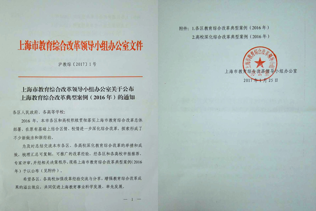 2016年,上海市各区和高校积极贯彻落实上海市教育综合改革总体部署,在原有基础上结合区情、校情进一步深化综合改革,探索形成了不少新做法和新经验。为及时总结交流上海市各区、各高校深化教育综合改革的举措和成效,梳理汇总可复制、可推广的改革经验,经各区和各高校申报推荐、专家评审,并经相关决策程序,最终选出2016年上海市教育综合改革典型案例。上海市教育综合改革领导小组希望各区、各高校加强改革经验交流与分享,增强教育综合改革成果的溢出效应,共同促进上海教育事业科学发展、率先发展。