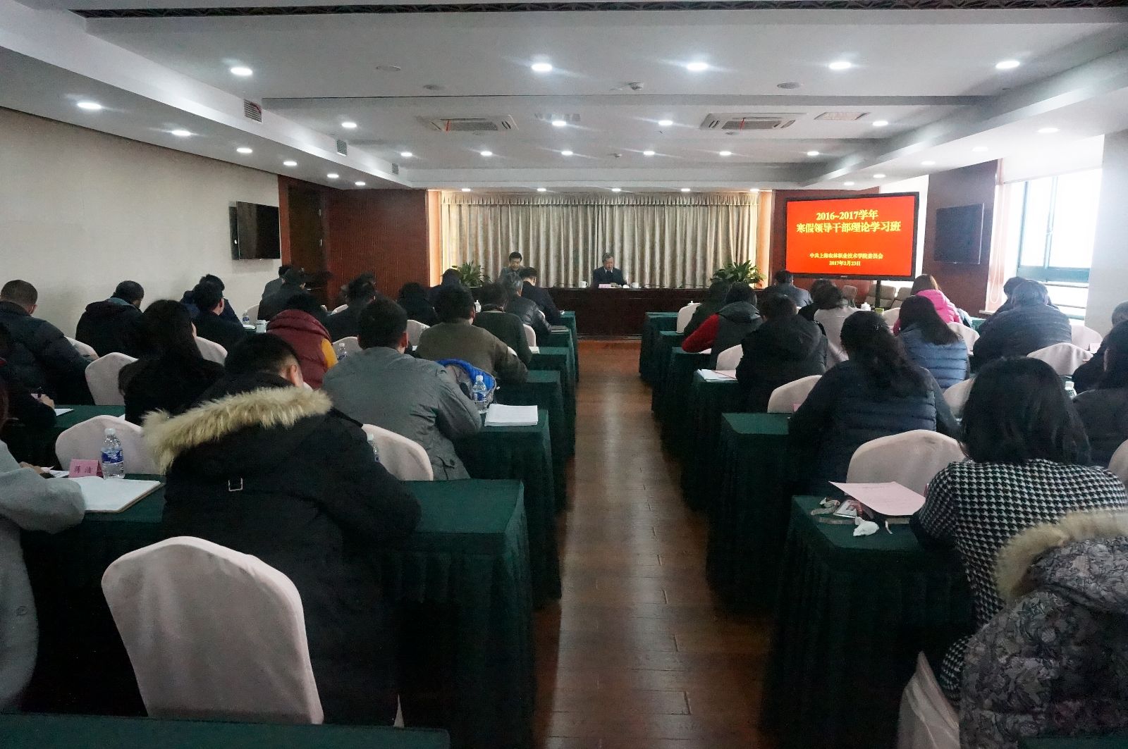 2月23日,学院寒假领导干部理论学习班开班,本次培训班以“加强内涵建设,树立品牌意识,全面提升人才培养质量”为主题。学院党政班子领导出席,全体中层干部参加,党委书记吴乃山主持会议。