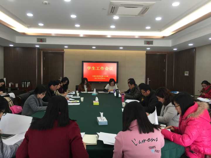 2月26日下午,在第四会议室,学院召开2016-2017学年第二学期首次学生工作会议,全面部署学生管理工作。党委副书记俞锦禄出席,学生处、各系学生工作负责人及全体辅导员参加,会议由学生处处长刘秀云主持。