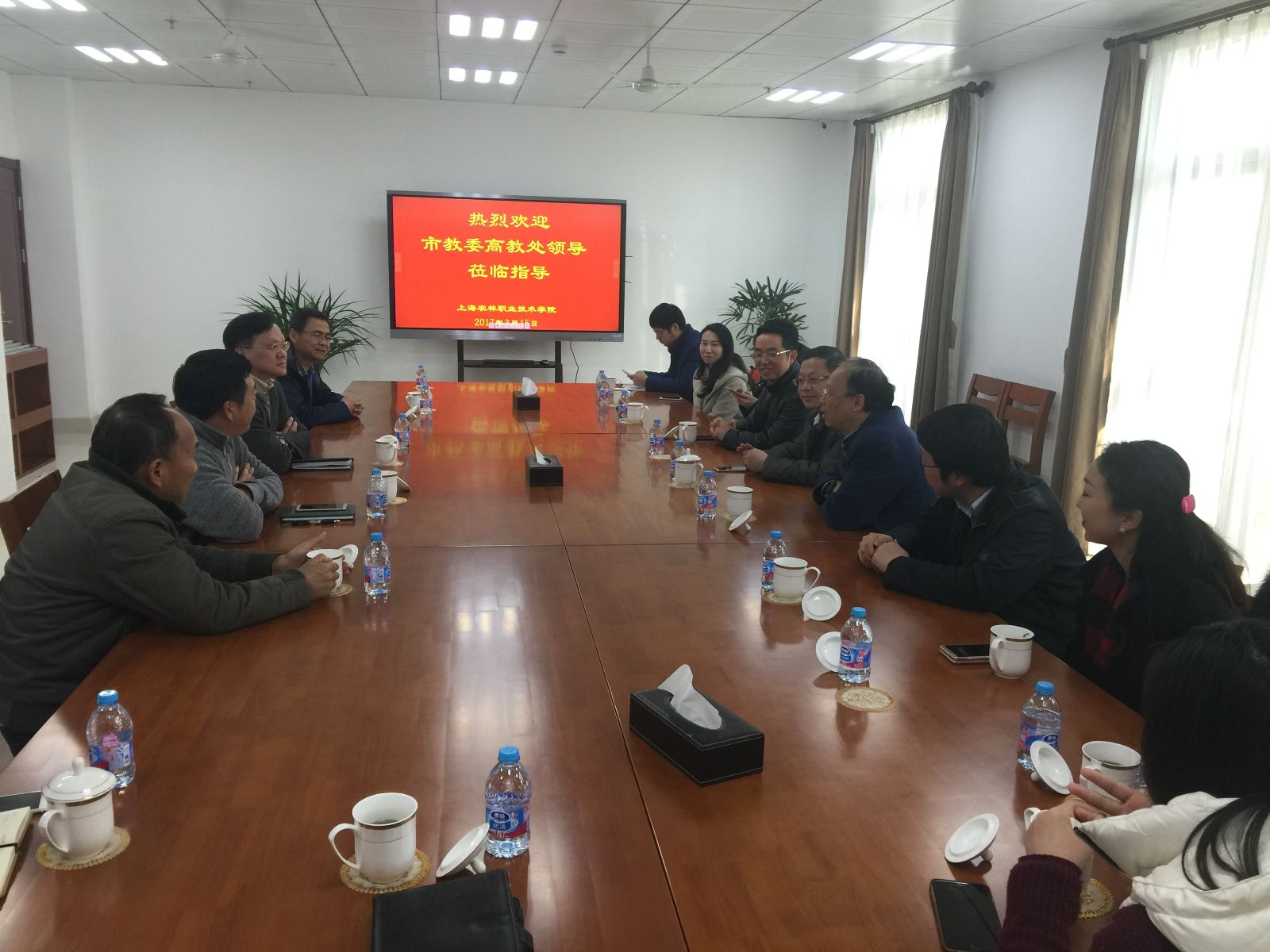 在植树前的调研会上,魏华简要介绍了学院的办学情况,尤其是对“后特色校”期间的发展思路、学院落实全国高校思政工作会议精神及推进教育综合改革、现代学徒制、学农与创新创业实践等方面的工作成效进行了汇报,与会人员结合专业建设、职业教育发展等方面进行了交流。
