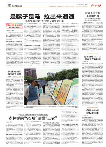 今天,松江报在第二版综合新闻栏目,用倒头条的形式,刊发了学院开设“中国系列”课程《大国三农》的报道。记者贾佳走进课堂,现场聆听党委书记吴乃山开出《大国三农》课程第七讲“中国饭碗:粮食安全与农业供给侧结构性改革”。课后,记者采访了吴乃山同志,并说道:“这个课程太有用了。”
