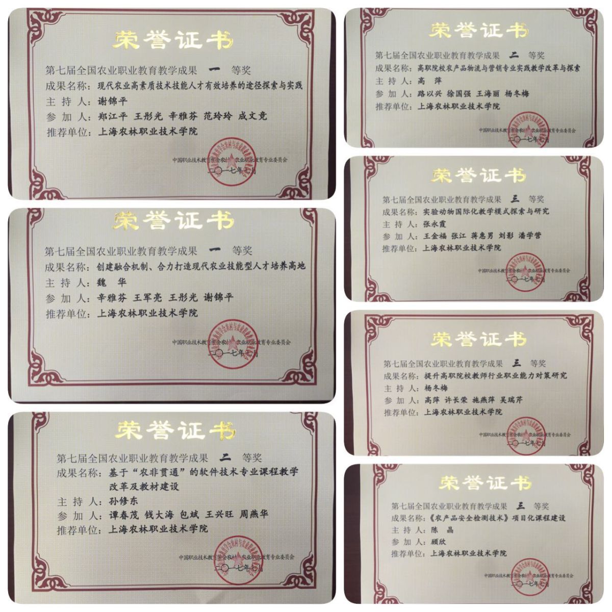 全国农业职业教育教学成果评审活动由中国职业技术教育学会农业职业教育专业委员会主办,两年一评。我院在接到《关于开展第七届全国农业职业教育教学成果奖评选工作的通知》(农专委【2017】2号)文件后,积极响应此次评审活动,高职教育研究所及时组织各系部开展成果申报,共收到8项成果申报。经高职教育研究所形式审查后,提交学院学术委员会进行审议。学术委员会委员对申报材料进行了认真审阅,经投票确定最终排序结果上报主办方。