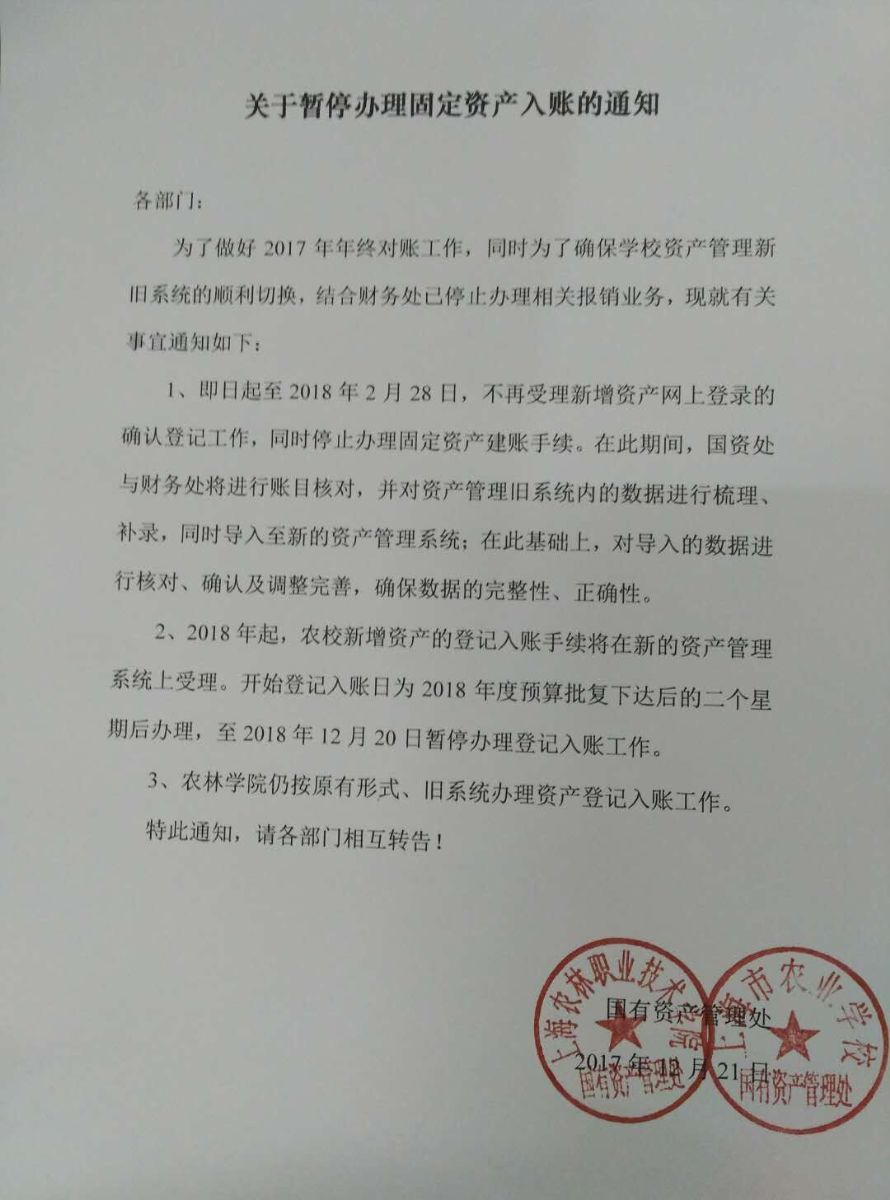 关于暂停办理固定资产入帐的通知
