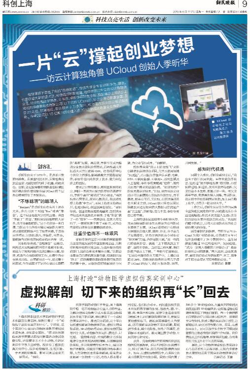 6月11日,新民晚报第A09版科创上海,报道学院动科系建设的动物医学虚拟仿真实训中心。