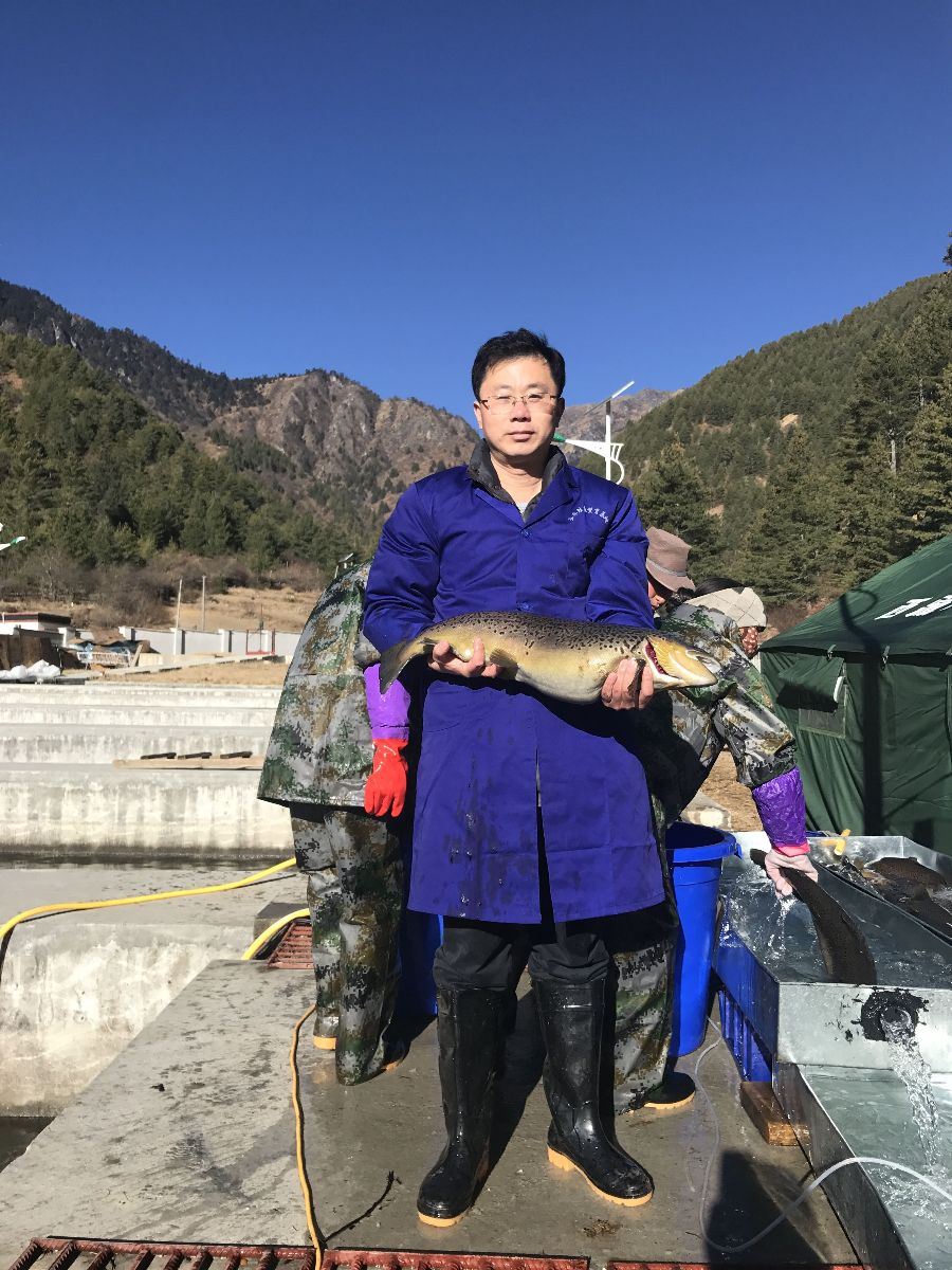 王成辉教授讲述了自2002年以来,他在青藏高原从事冷水性鱼类的种质资源研究与产业开发工作,以及在国内建立先进的冷水鱼产业化开发技术的历程。王教授研究团队在面临国家贫困县西藏亚东县技术缺乏、人才匮乏的“双缺”产业瓶颈下,树立了“扶贫先扶智、兴业先兴技”的指导思想,确立了“攻克一批难题、传授一批技术、培养一批人才、支撑一项产业、扶贫一方民众”的工作目标,在短短3年时间内,带领亚东建设队伍,建成了1个繁育基地、3个鱼种培育基地、1个成鱼养殖产业园。王教授团队培养了亚东县技术队伍,实现了当地藏民从“牧民”到“渔民”的转变。