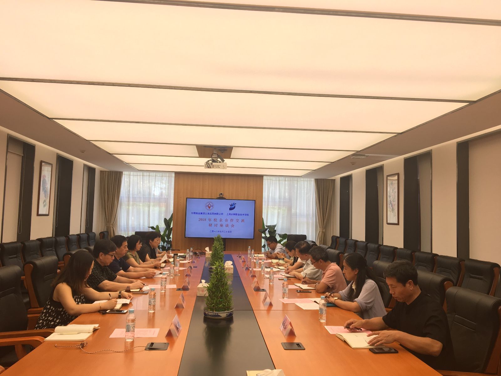 7月25日上午上海现代农业职教集团理事长魏华院长携学院教务处、人事处、校企办相关同志赴光明食品集团上海五四有限公司就集团内教师企业实践基地市级培训项目与进一步加大师生实践技能培养力度等工作开展深入交流。交流合作研讨会由五四公司人力资源部经理赵来芳主持,五四公司党委书记、董事长黄超,副总张海龙,项目负责人顾巧英研究员、蔡雪雅副经理及项目带教老师顾大国、罗清连、蔡红玲等参加。蔡雪雅副经理首先就五四公司教师企业实践基地自2013年建成以来的成就进行了总结,并针对这几年的问题进行了分析,分享了其它教师企业实践基地的宝贵经验。三位带教老师则根据自己这几年的带教经验提出了一些有效的建议,并指出这项工作是双方互相学习互相促进,基本实现了校企之间的双赢效果。魏院长肯定了5年来企业为提高教师实践能力作出的努力与贡献,表示将在制度保障、过程规范和效果追踪上加强力度,以期将这项工作推向更高的台阶。最后黄超书记提出了两点要求:一要细化工作方案,在以后工作推进上更规范更完善,继续保持积极的工作状态;二要优化制度建设,扎实规范强化工作形成有效的制度,保证项目健康运行,以期2019年的工作做的更完美。