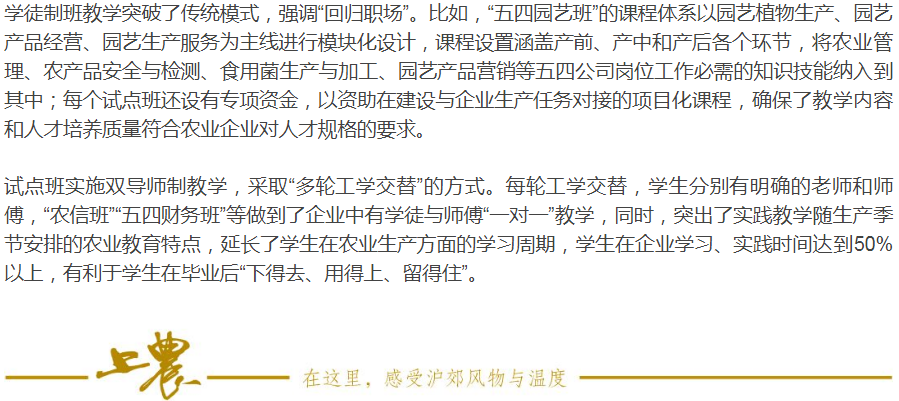 上海这家通过国家首批现代学徒制试点验收的涉农职院,有哪些人才培养特色?