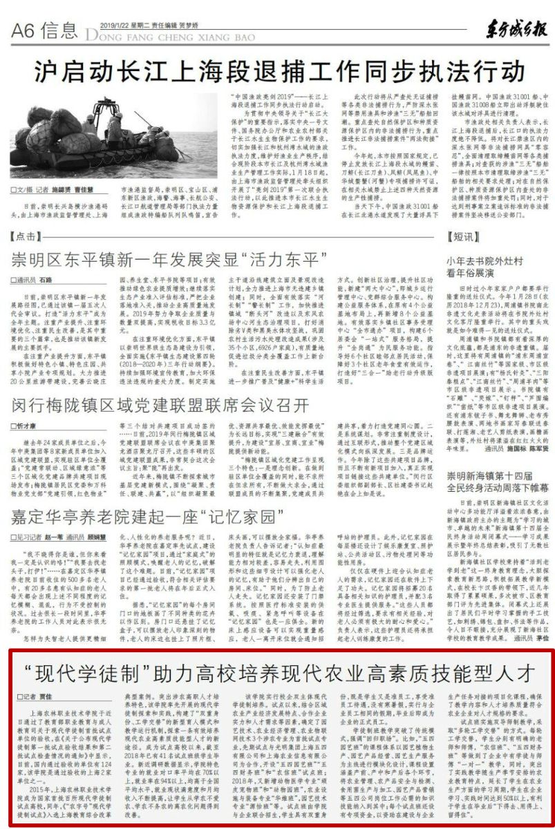 1月22日,东方城乡报报道我院“现代学徒制”试点通过国家首批验收。