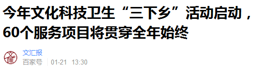 1月21日,文汇报官方微信报道我院参加2019年上海市科技文化卫生“三下乡”活动启动仪式,并提供相应服务。
