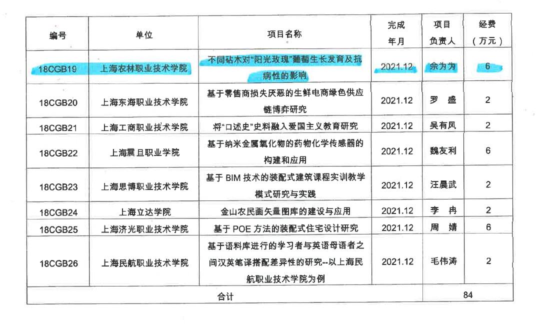 近日,接到市教委通知,植科系佘为为老师申报的“不同砧木对‘阳光玫瑰’葡萄生长发育及抗病性的影响”课题获上海市教委2018年度“晨光计划”项目立项。