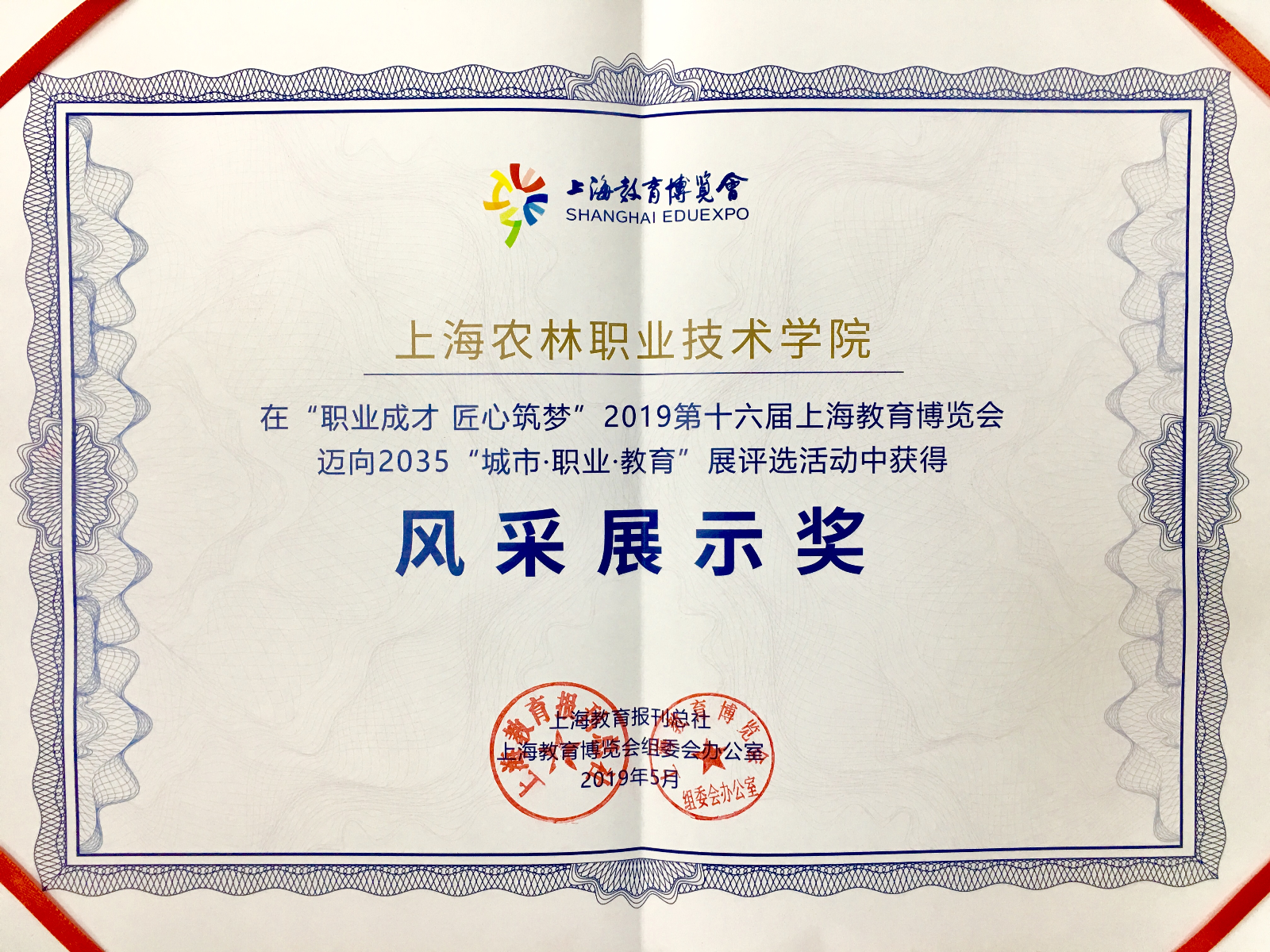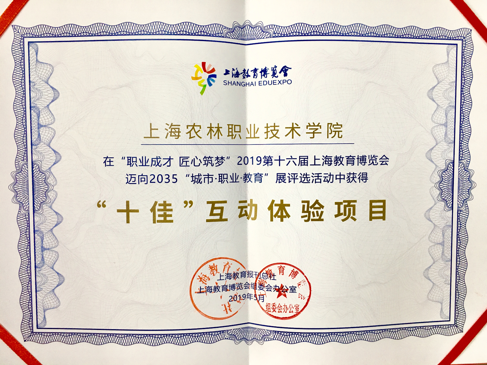 2019第十六届上海教育博览会总结颁奖会于5月30日在上海教育报刊总社报业大楼三楼301多功能厅隆重举行。学院周密策划、精心设计的3个项目荣获“‘十佳’互动体验项目奖”和“风采展示奖”两个奖项,上海市教委高教处处长桑标出席会议并讲话。