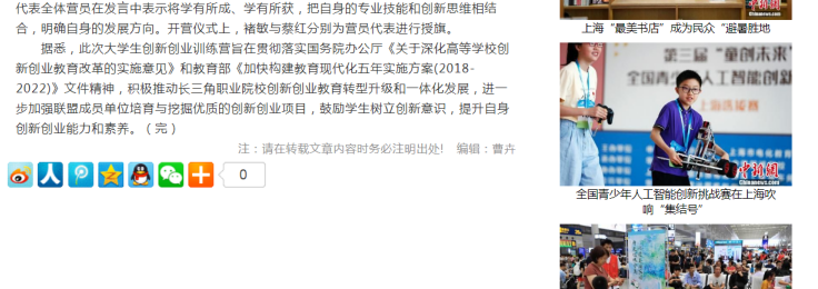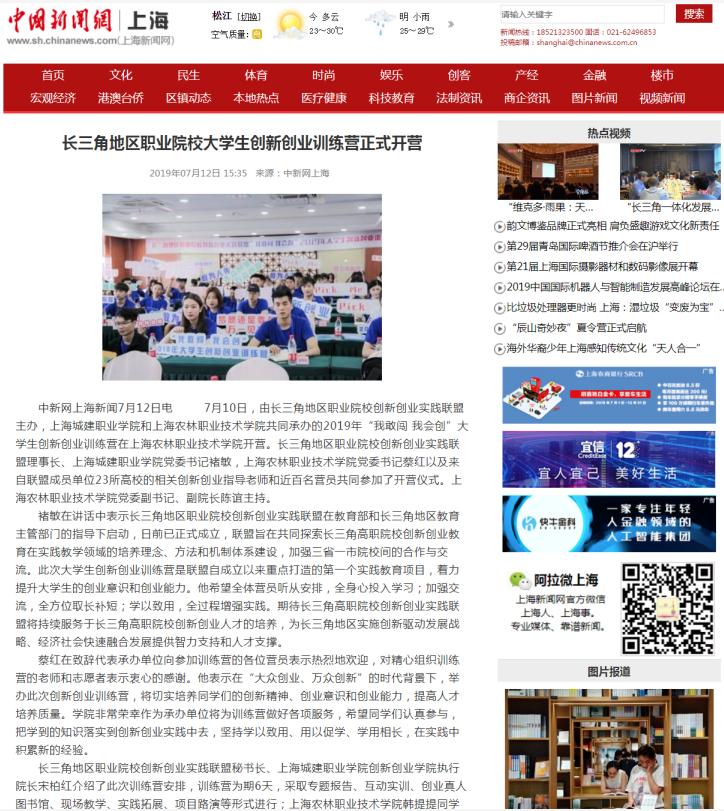 7月12日,中新网上海频道报道学院承办的长三角地区职业院校大学生创新创业训练营正式开营。