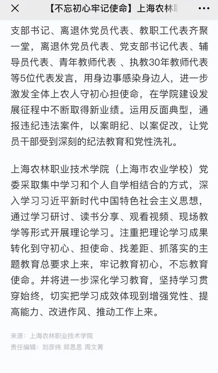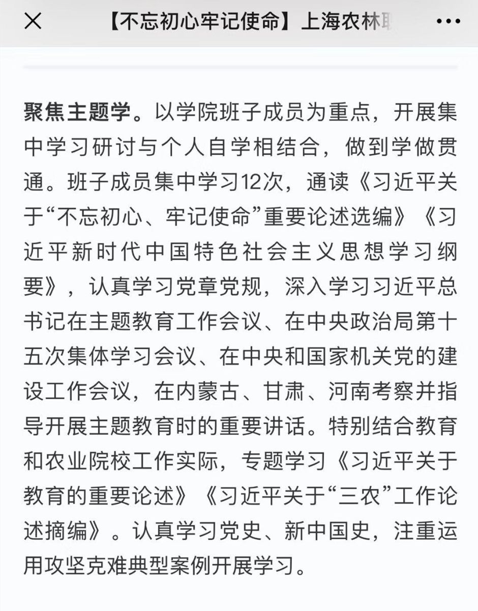 【不忘初心牢记使命】上海农林职业技术学院:开展主题教育,做到学用贯通