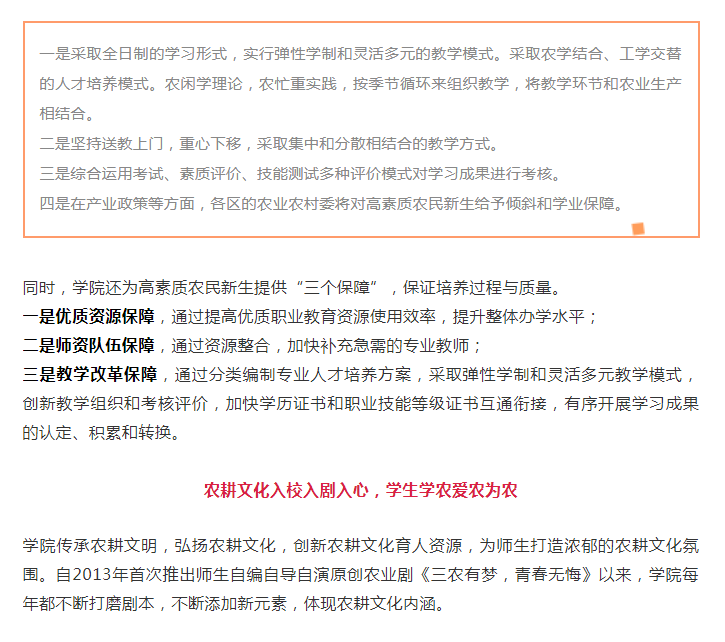 同时,学院还为高素质农民新生提供“三个保障”,保证培养过程与质量。