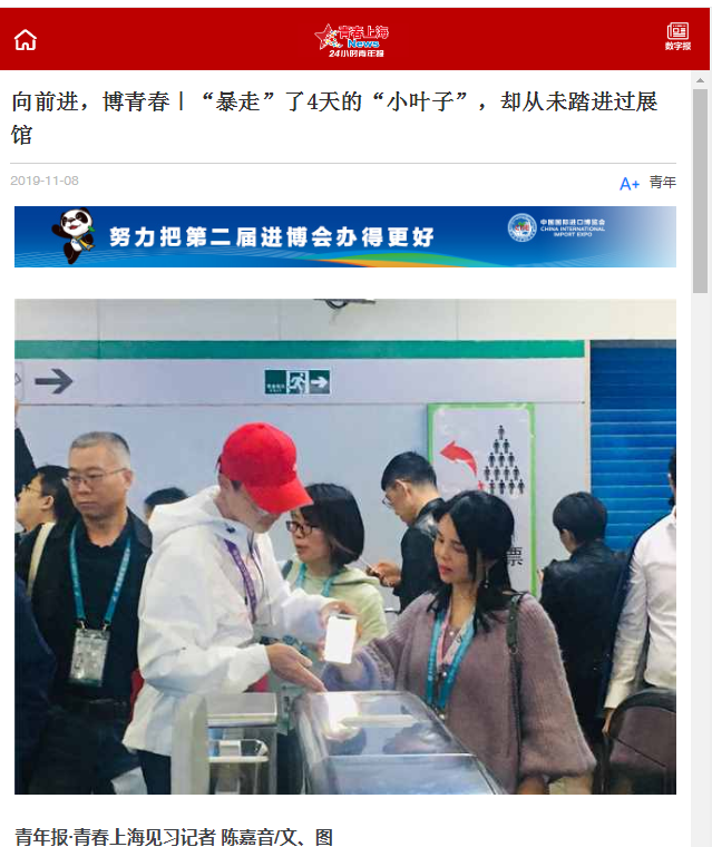 11月8日,青年报报道学院“小叶子”以暴走方式服务第二届进口博览会。