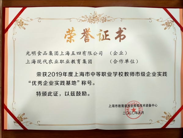 近期,经上海市教育委员会教育技术装备中心评选,上海现代农业职教集团与光明食品集团上海五四有限公司合作共建的教师企业实践基地荣获2019年度上海市中等职业学校教师市级企业实践“优秀企业实践基地”称号。此次荣誉的获得是对上海现代农业职教集团对外开展校企合作、增进校企交流、提升教师素质的充分肯定。