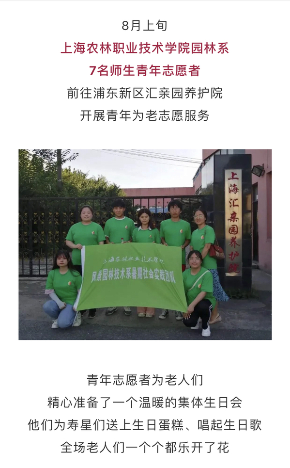 近日,中国青年志愿者和上海青年志愿者微信公众号报道我院园林系为老志愿服务。