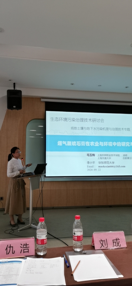 毛玉梅老师在“场地土壤与地下水污染机理与治理技术”分会场中就所编写的学术专著《烟气脱硫石膏在农业和环境上的应用》中的内容进行了简要介绍与学术交流研讨。