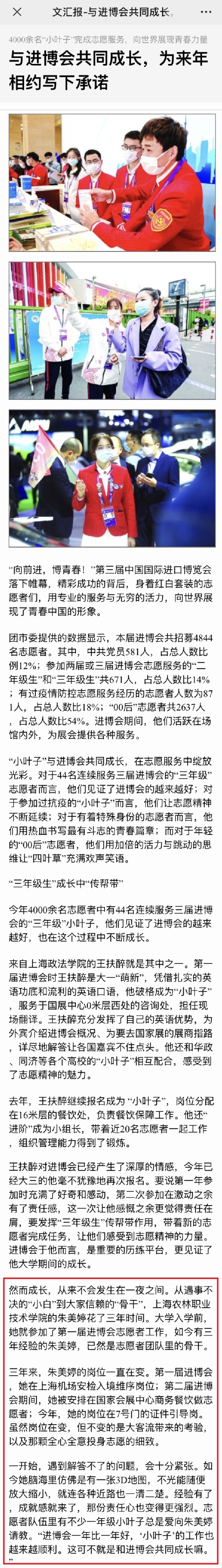 近日,文汇报报道我院第三届中国国际进口博览会小叶子事迹。