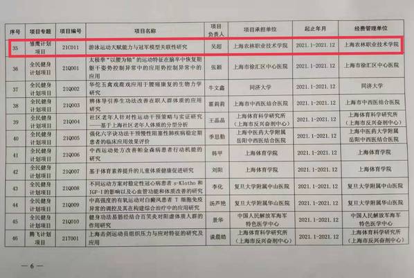 该项目是学院首个上海市体育科技研究项目,也是2021年该类项目中唯一一个由高职院校承担的项目,于2020年12月通过专家评审并向社会公示后予以立项。